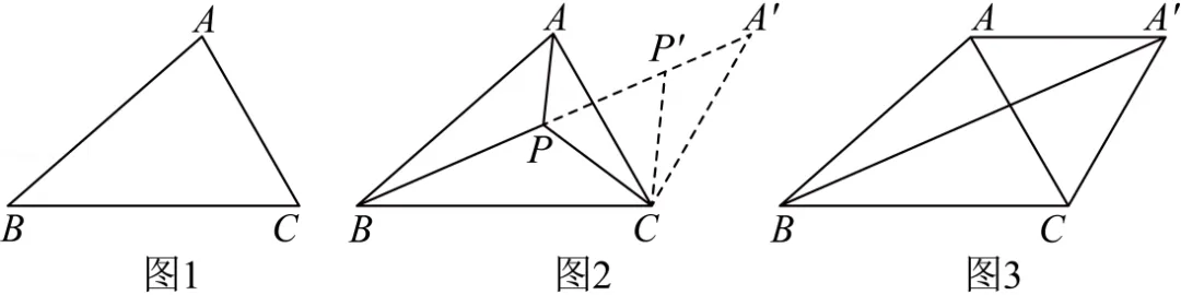 (2)由以上探究过程可知,如图3,我们只要以AC为边向外作等边三角形ACA′,连接BA′,此时点P位于线段BA′上,请在此基础上通过尺规作图找出点P的位置.(保留作图痕迹)
