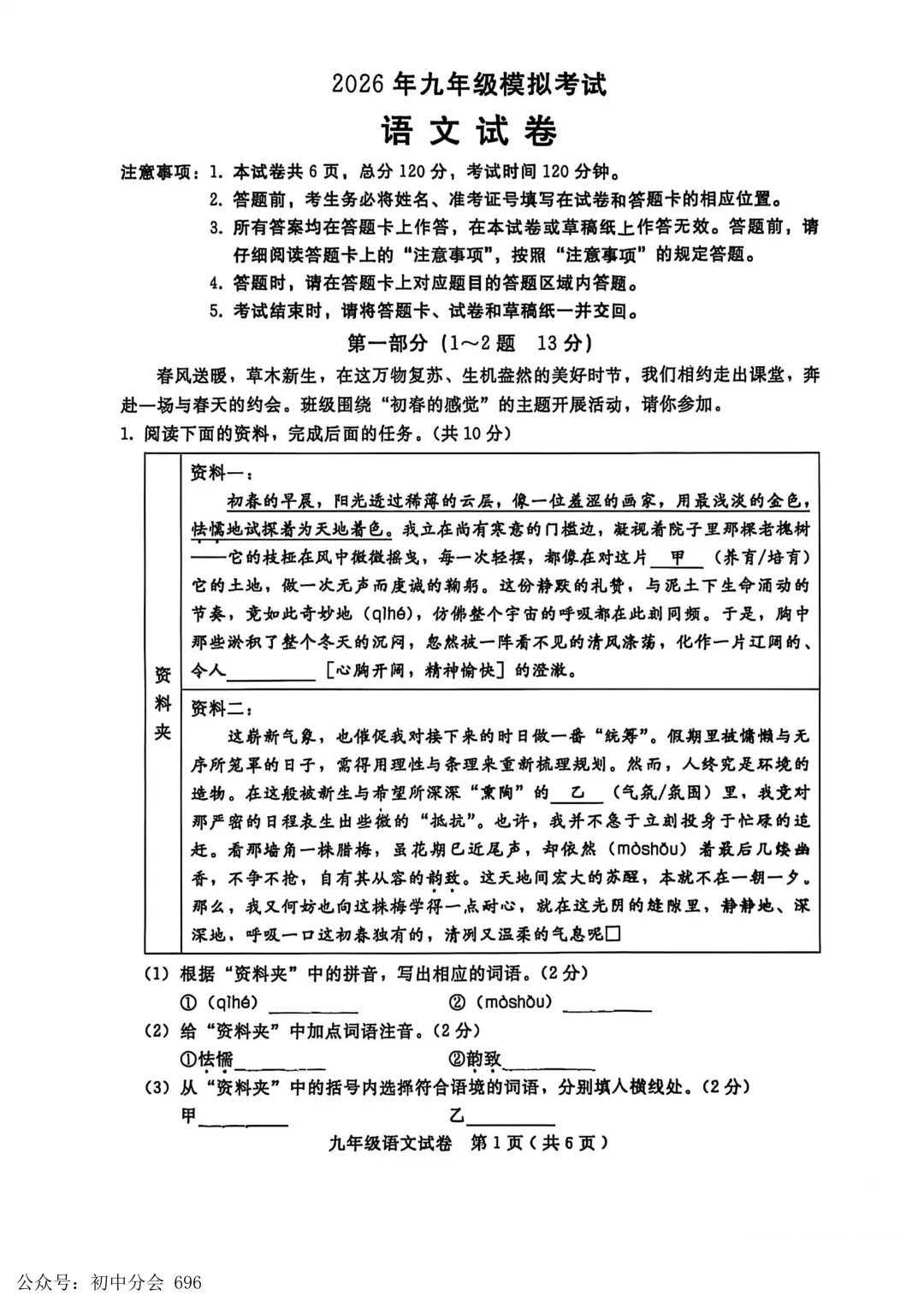 2026年乌鲁木齐二模语文试卷+答案ئۈرۈمچى رايۇننىڭ2-مانۋىرى ئەدەبىيات سۇئالى+جاۋابى