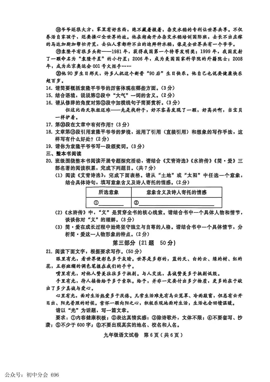 2025年楚雄中考一模语文试卷(楚雄初三统考)