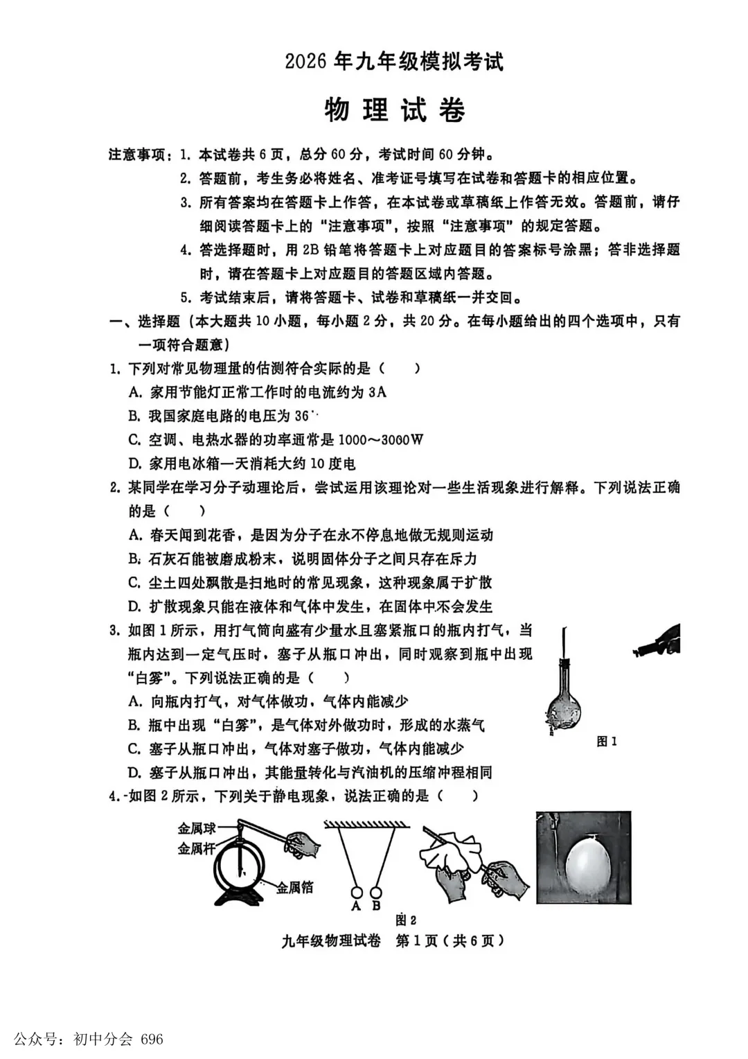 2026年河北省初中学业水平摸底考试及答案(全科)