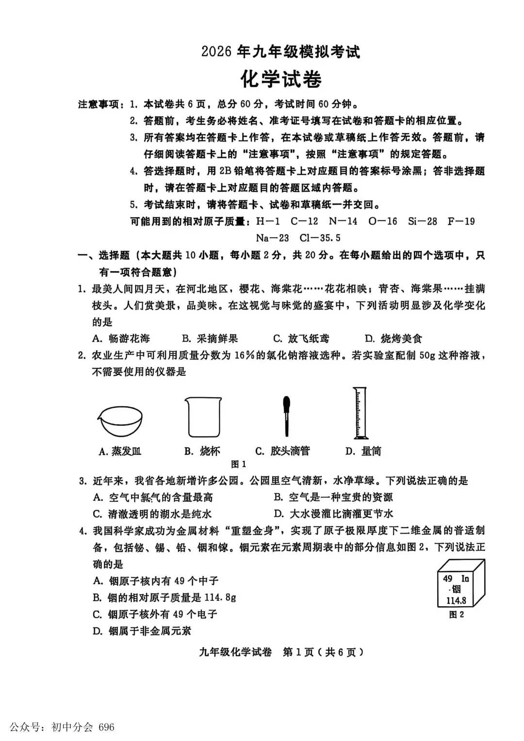 2026年河北廊坊市香河县中考一模化学试卷