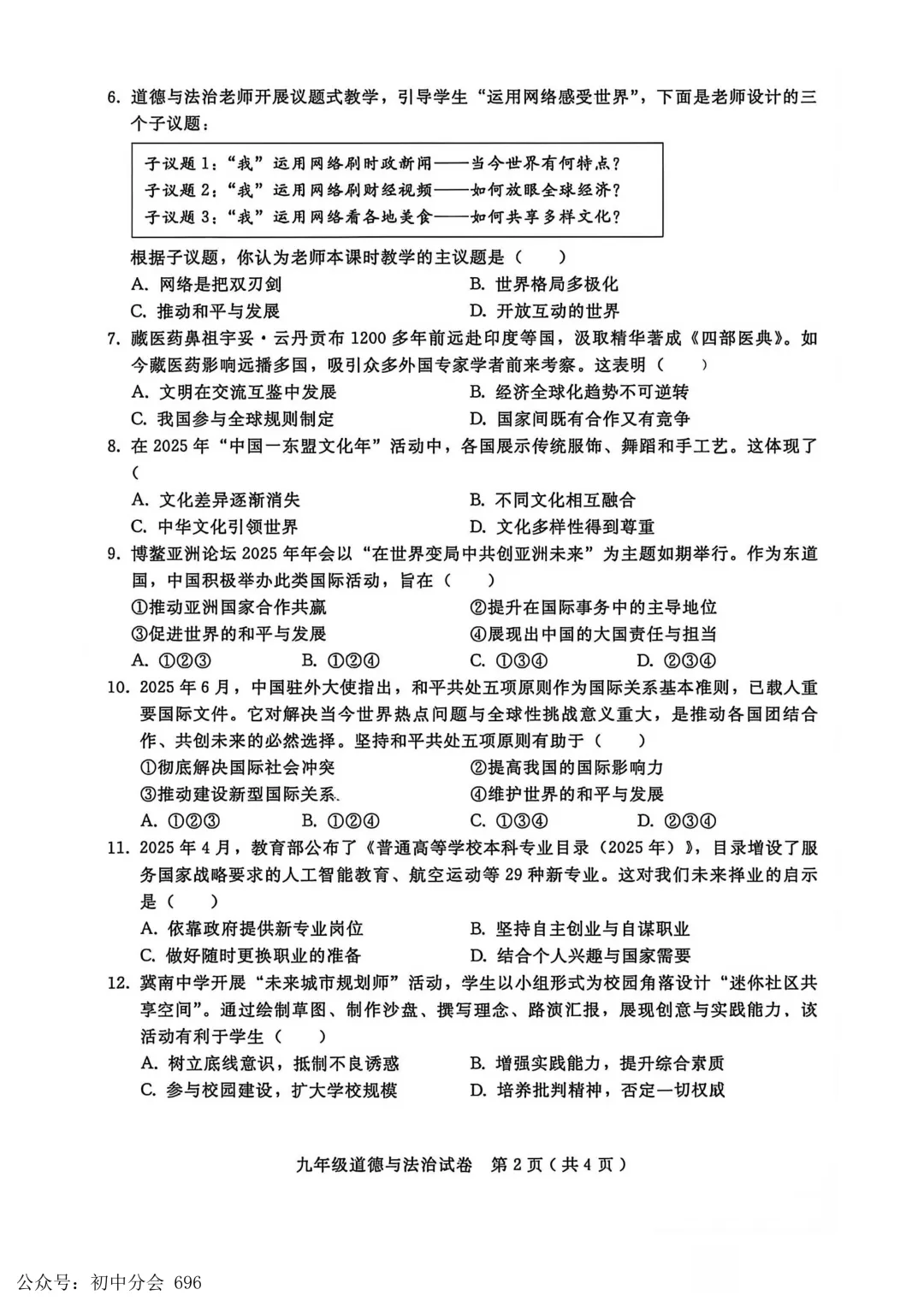 2026届成都二诊试卷和答案(无水印),已全部更新中!