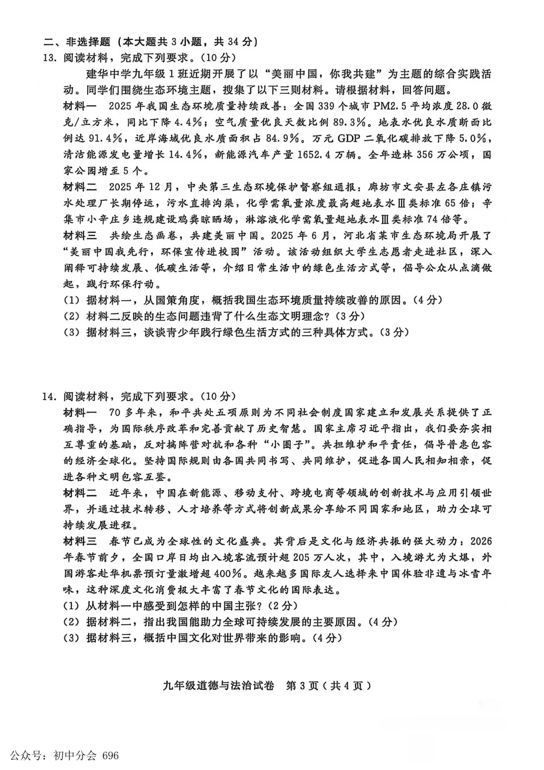 2025-2026学年九年级评估质量监测(三)试卷及答案(全科含听力)