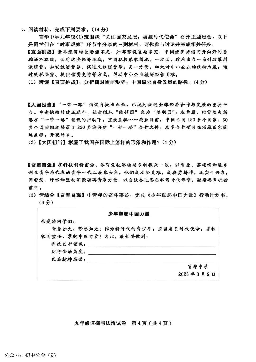 2026年3月安徽地区中考一模道法试卷附答案