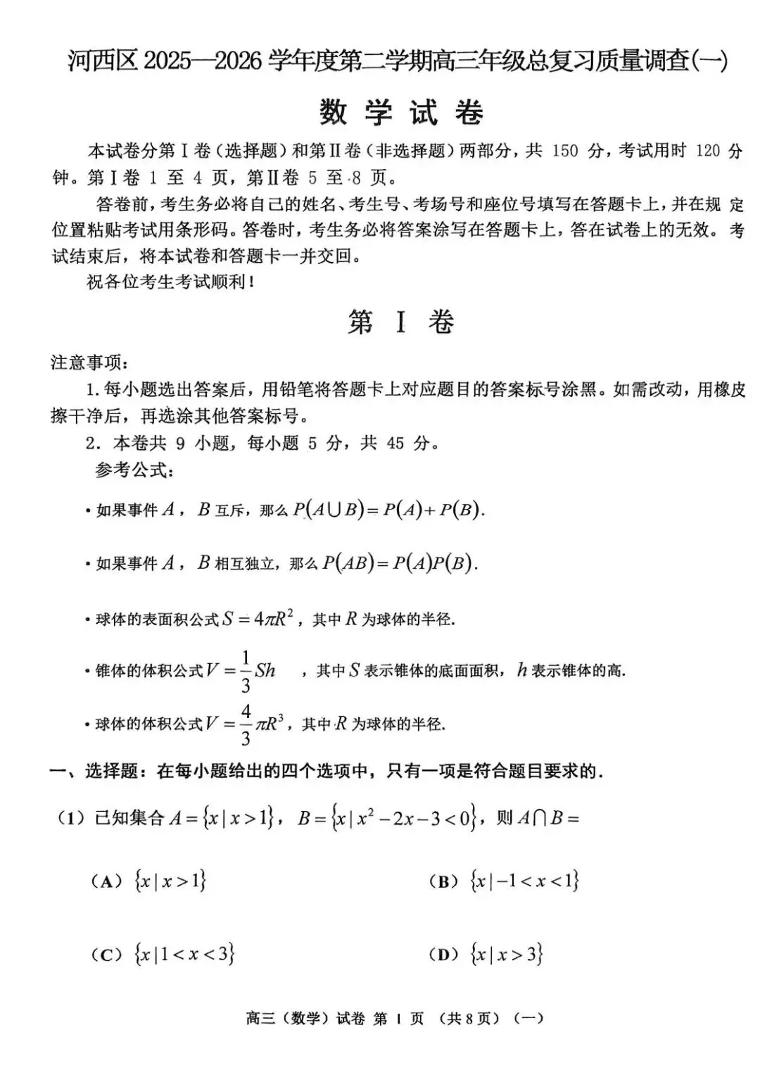 总体而言,河西区一模数学试卷质量上乘,既注重基础知识考查,又强调综合能力与创新思维,符合新高考改革方向,对高三学生具有很好的诊断和指导价值。试卷中的典型题目尤其是第20题,体现了高考试题的发展趋势,值得师生深入研究。