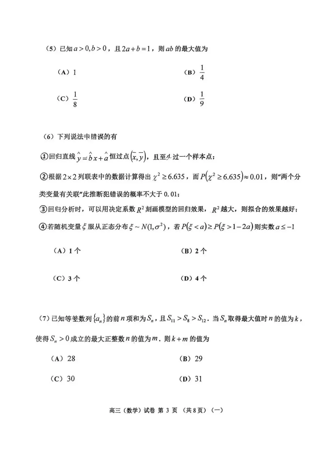 - 思维深度:如第6题统计判断、第19-20题证明题