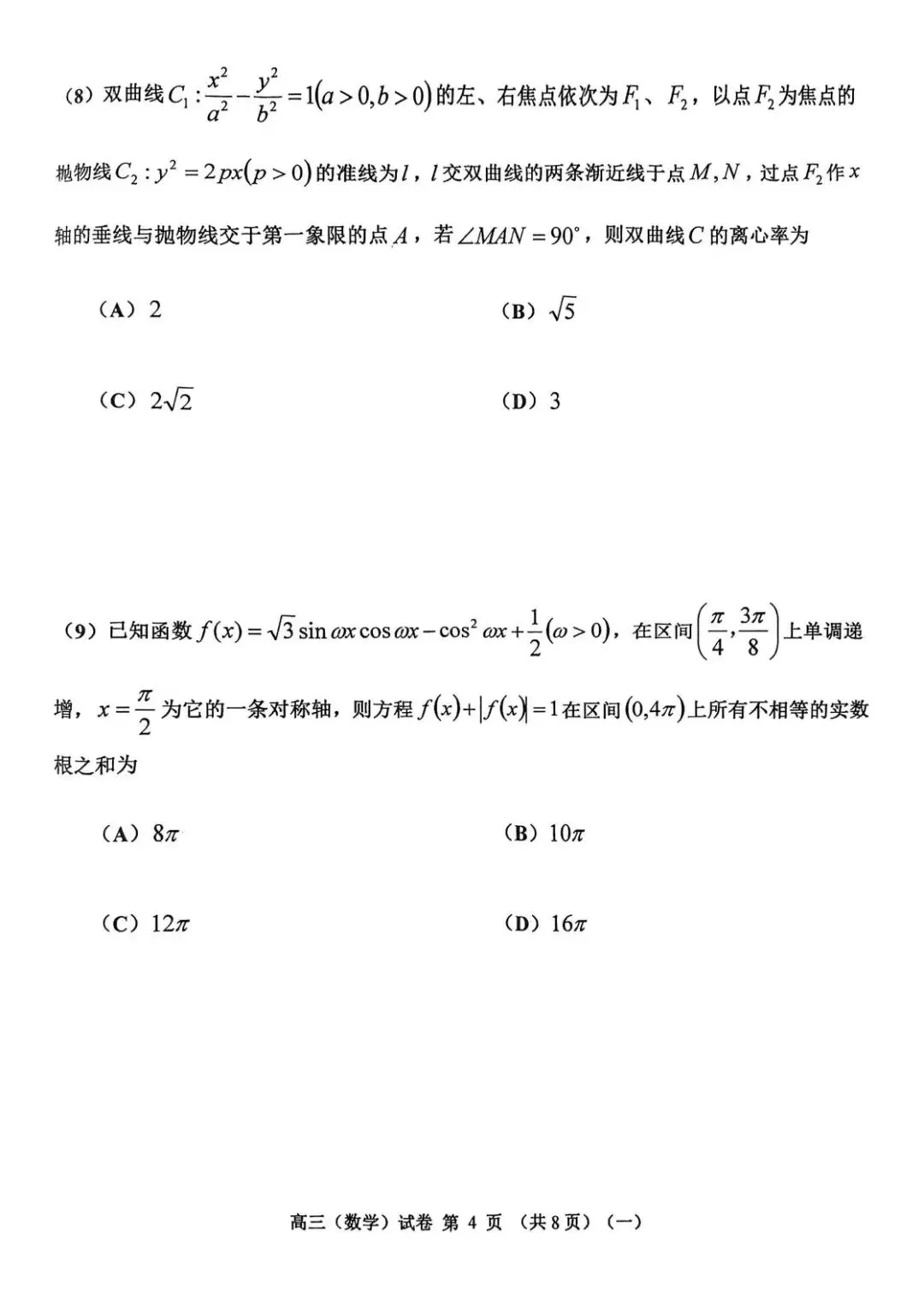 - 综合性突出:多题融合多知识点,如第8题融合双曲线与抛物线