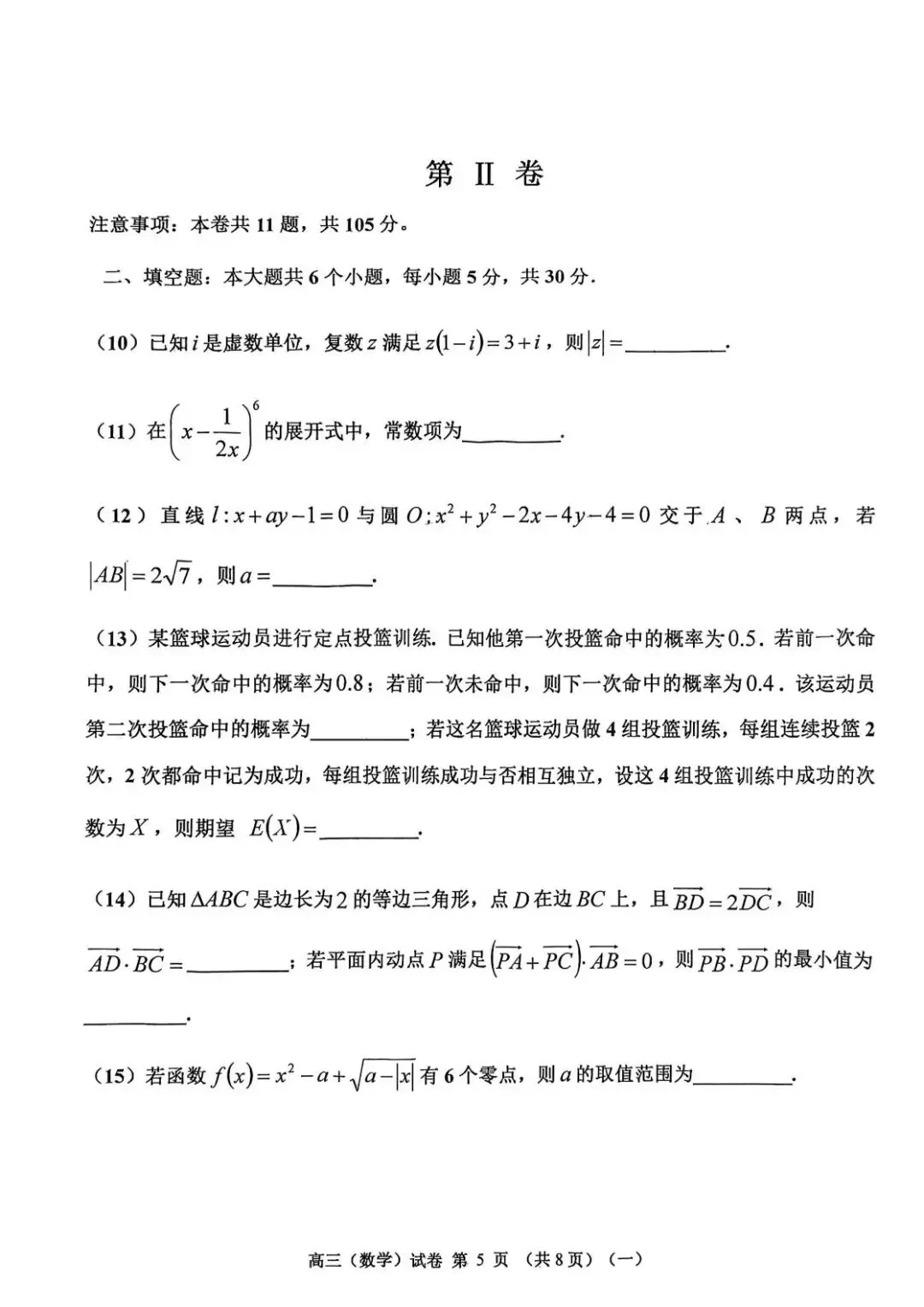- 应用导向:如第13题篮球投篮概率问题、第15题几何应用
