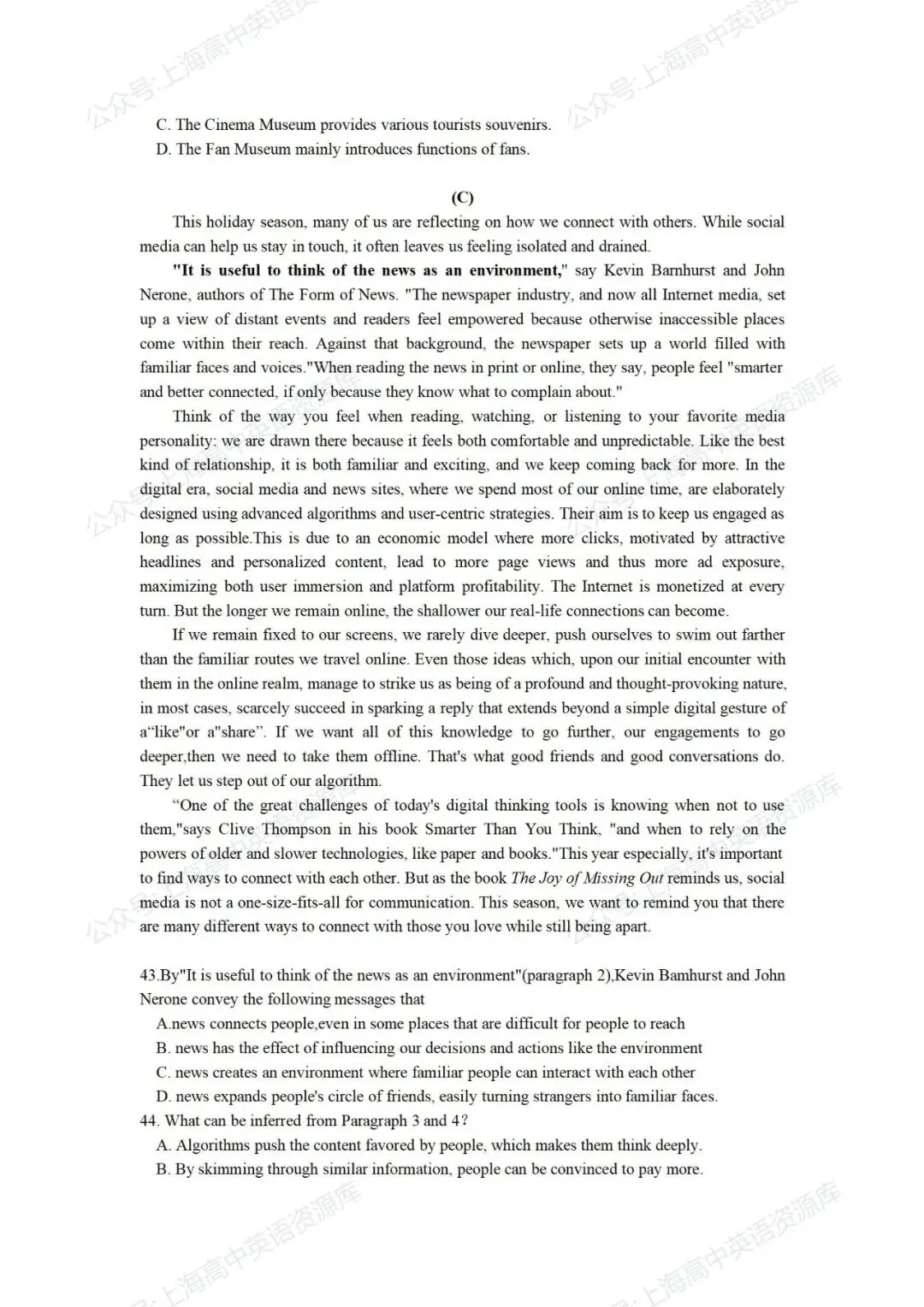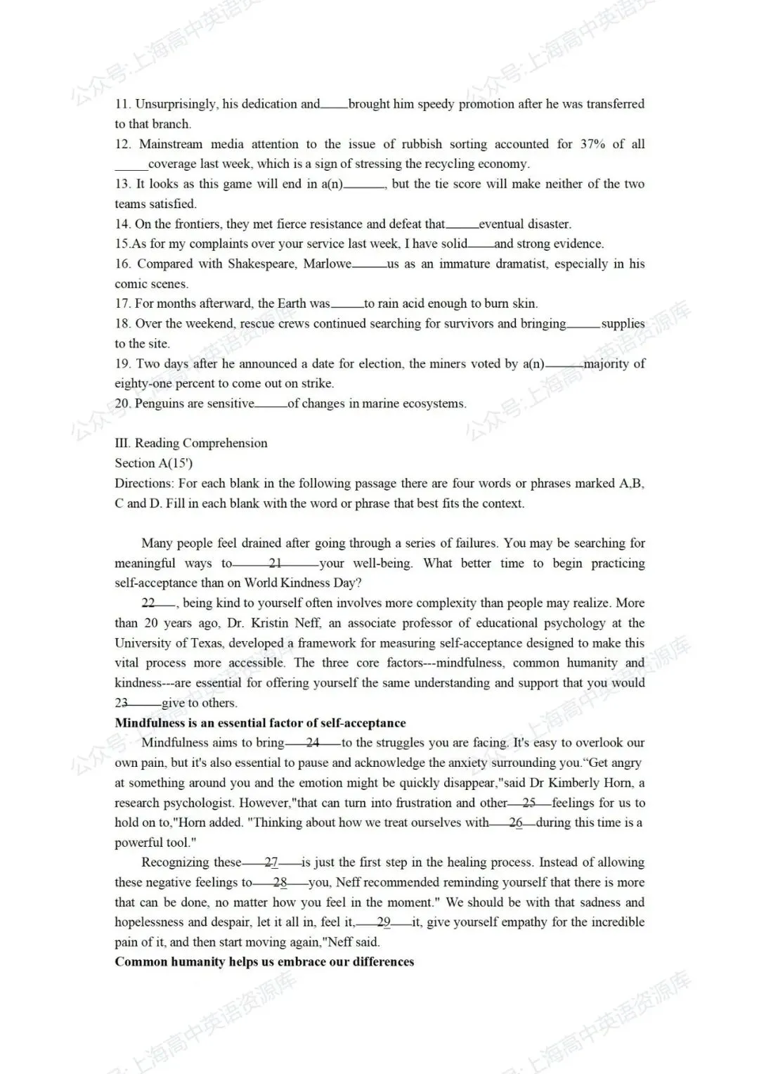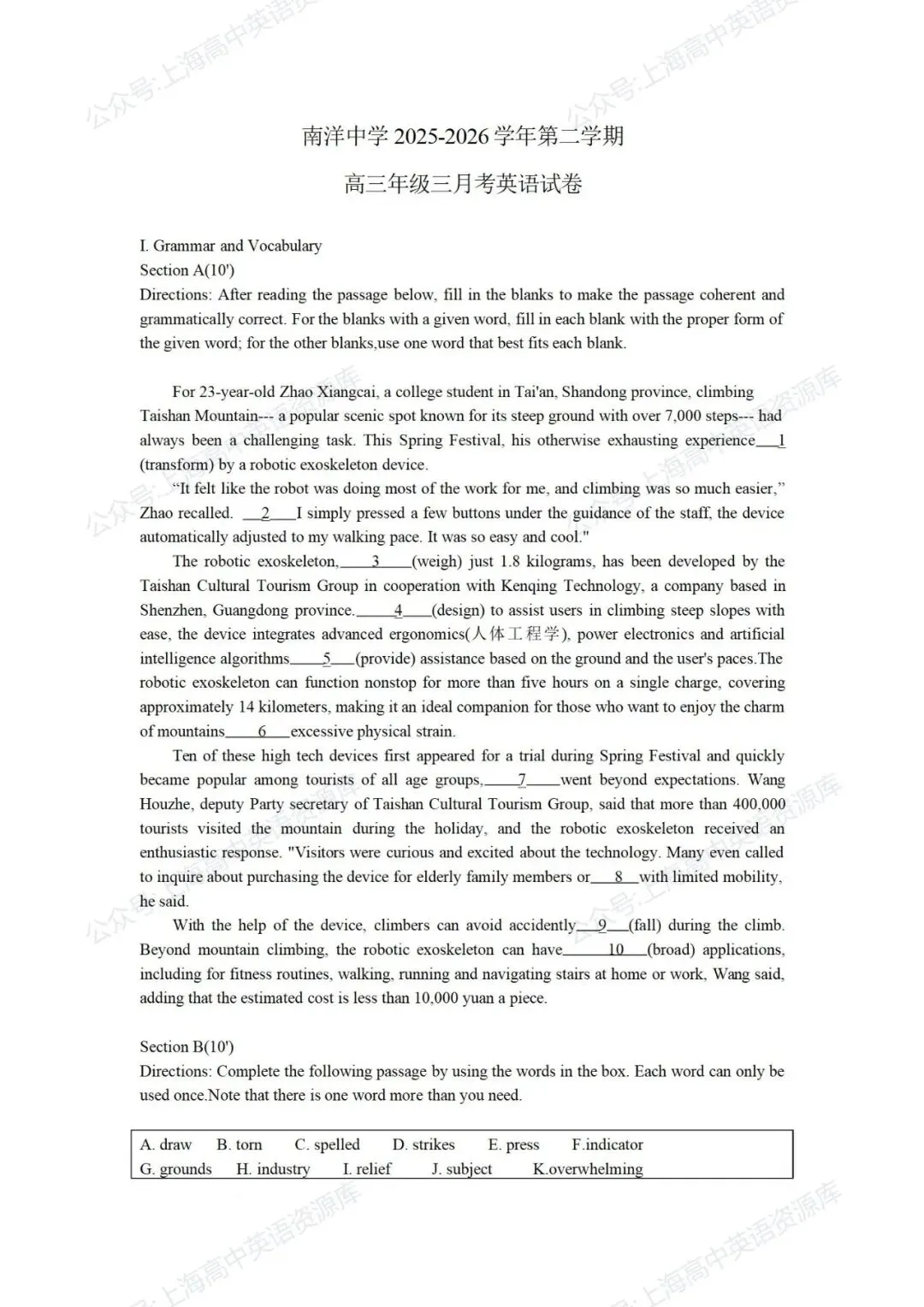 【试卷推送】上海市南洋中学2025-2026学年第二学期高三年级3月考英语