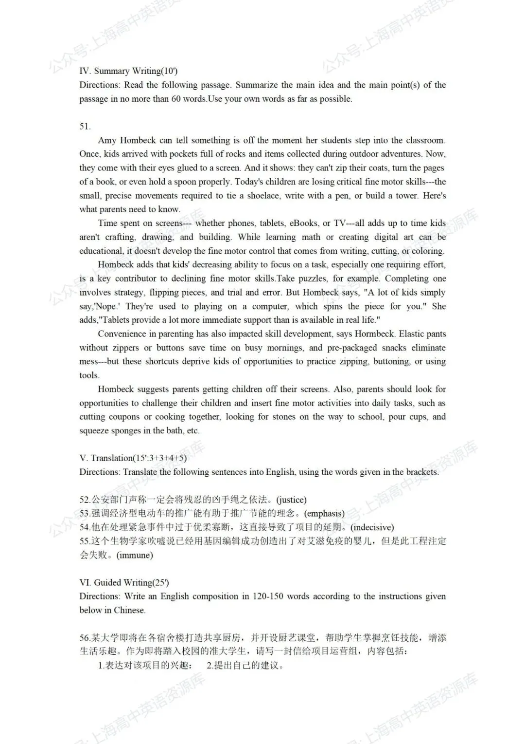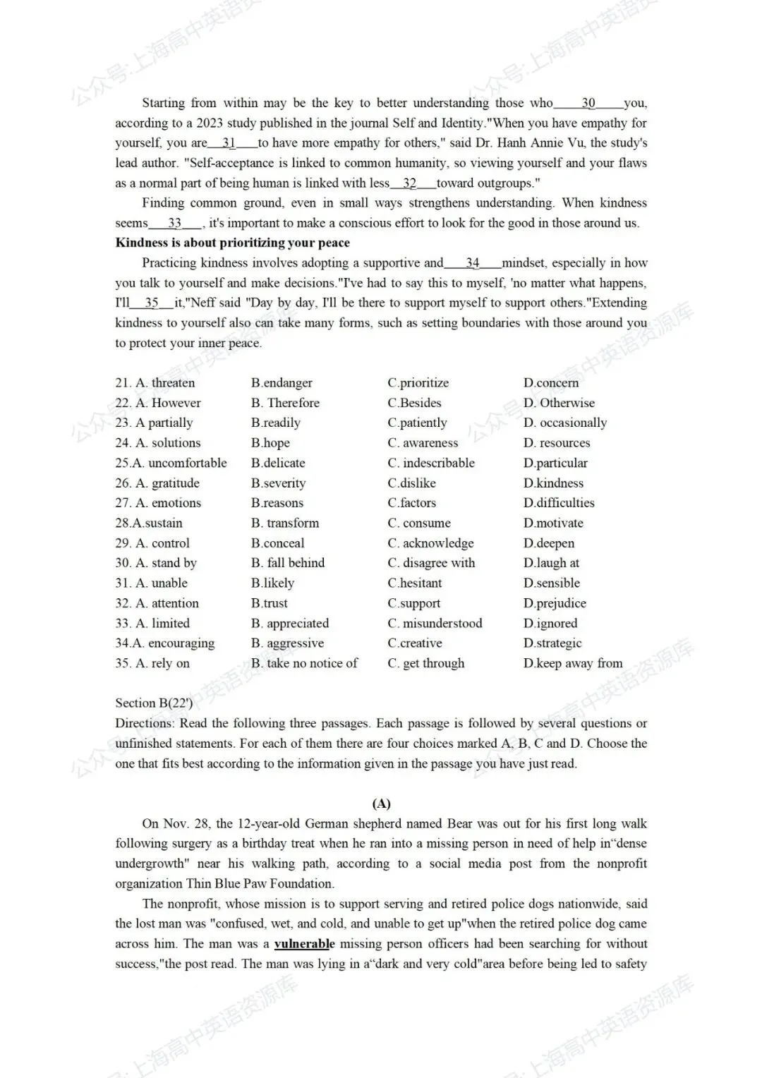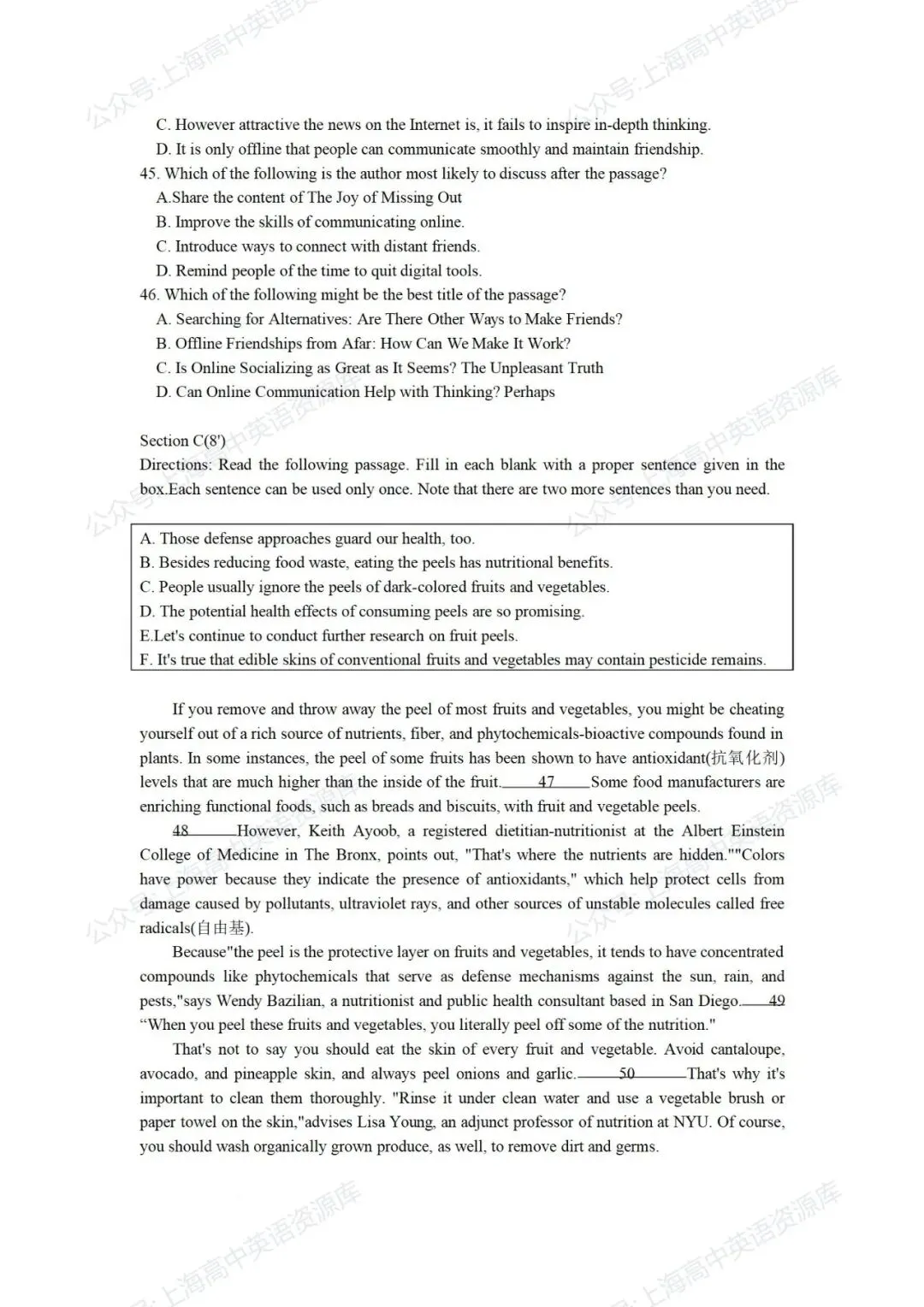 【试卷推送】上海市南洋中学2025-2026学年第二学期高三年级3月考英语