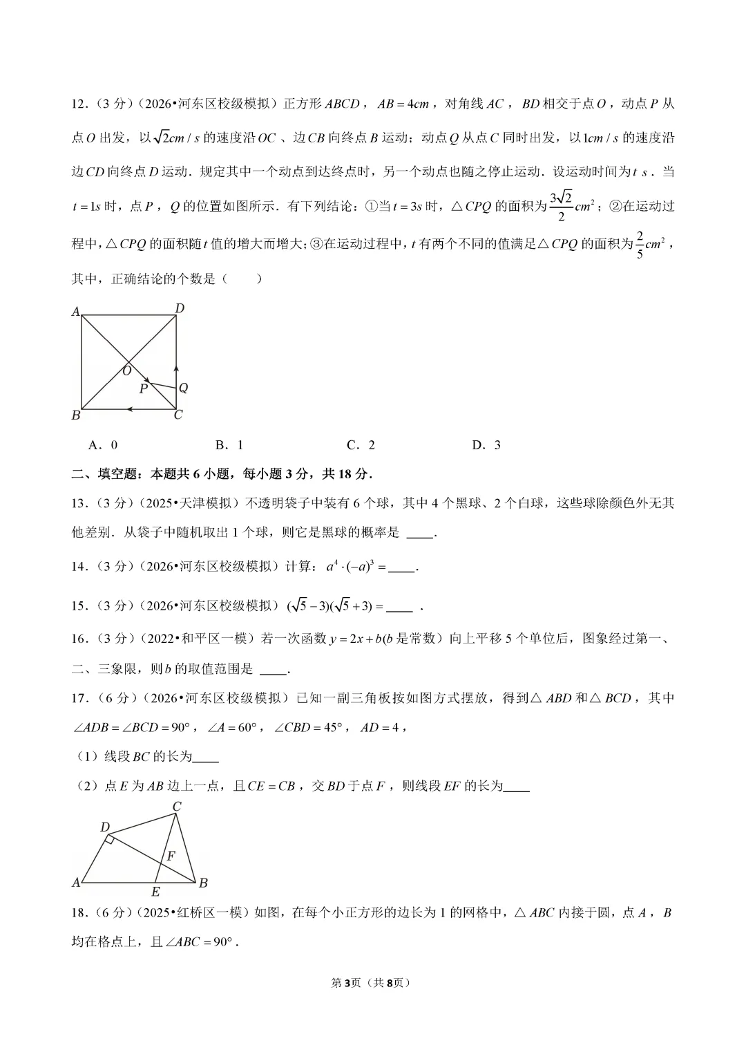 2026.3邯郸市部分县区统考中考一模试卷及答案(全科可打印)