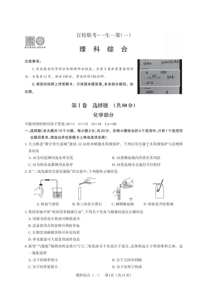 2026百校联考一理综试卷