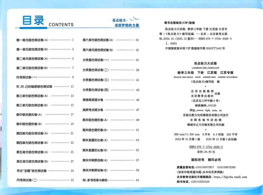 今天分享的是:2026春《亮点给力大试卷》数学苏教版一二三四五六年级下册,高清电子版建议分享到班级群/年级群,让家长打印出来,帮助孩子学习!