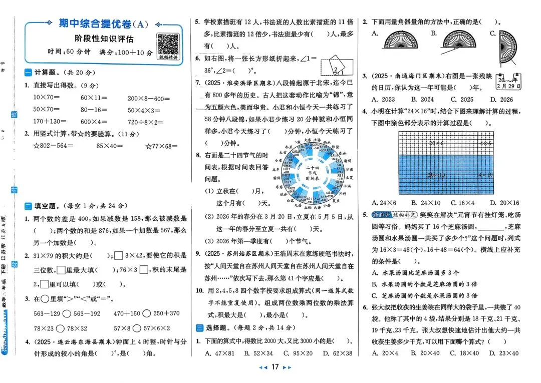 2026春《亮点给力大试卷》数学苏教版一二三四五六年级下册