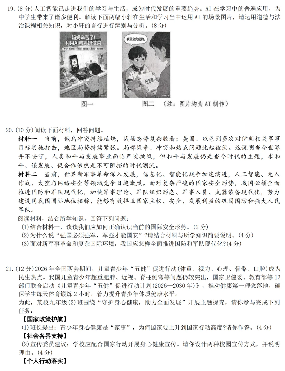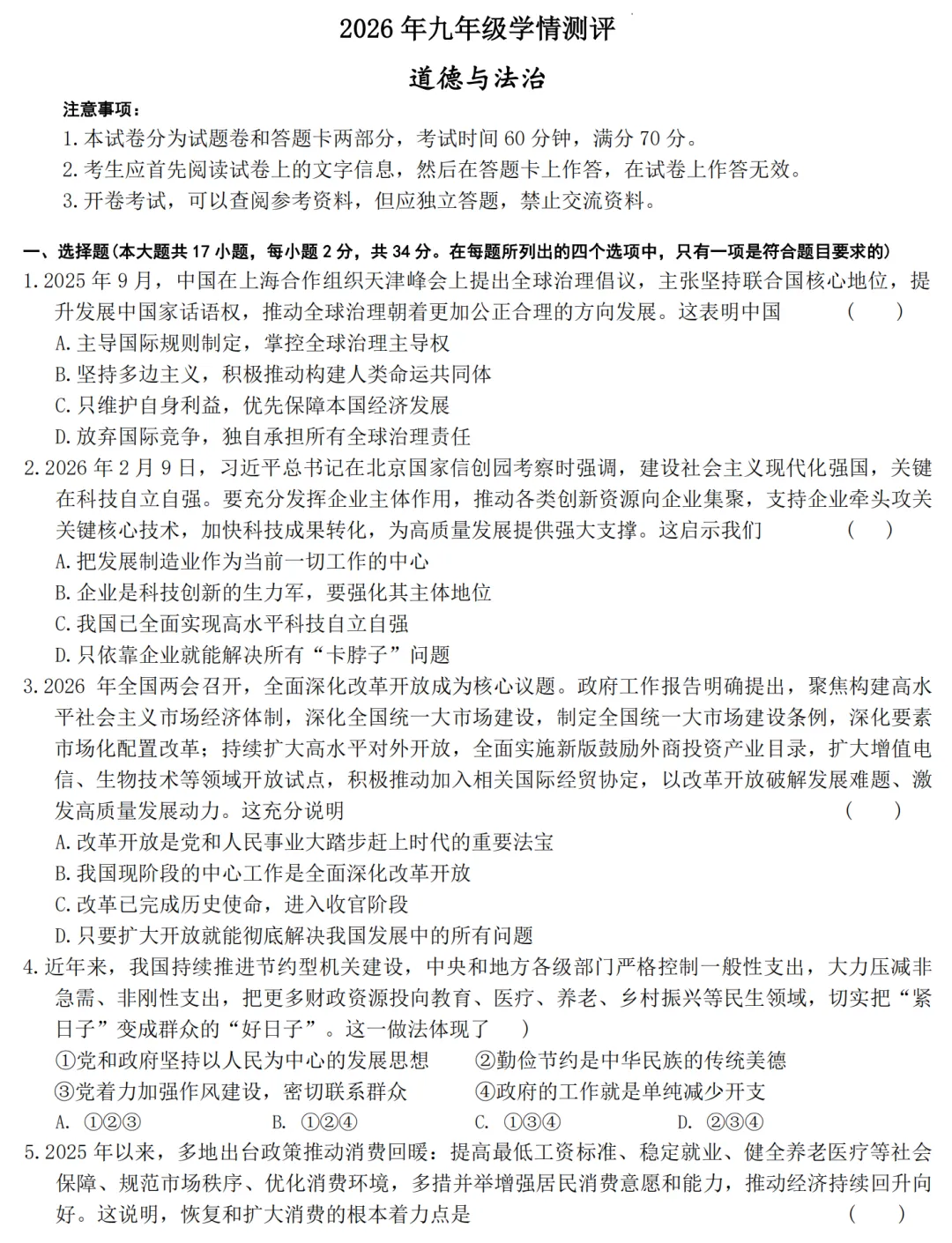 初中试卷: