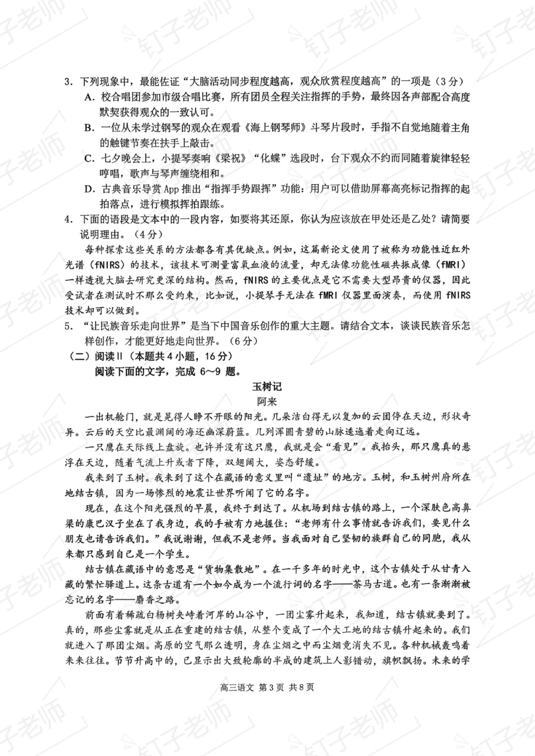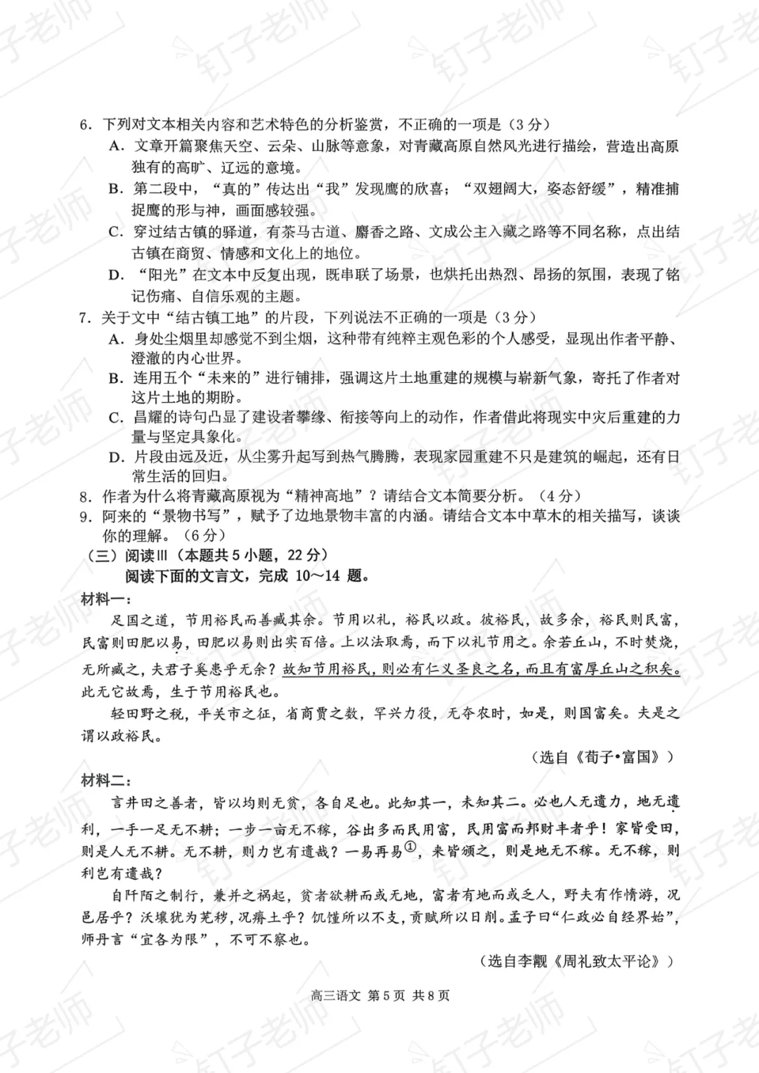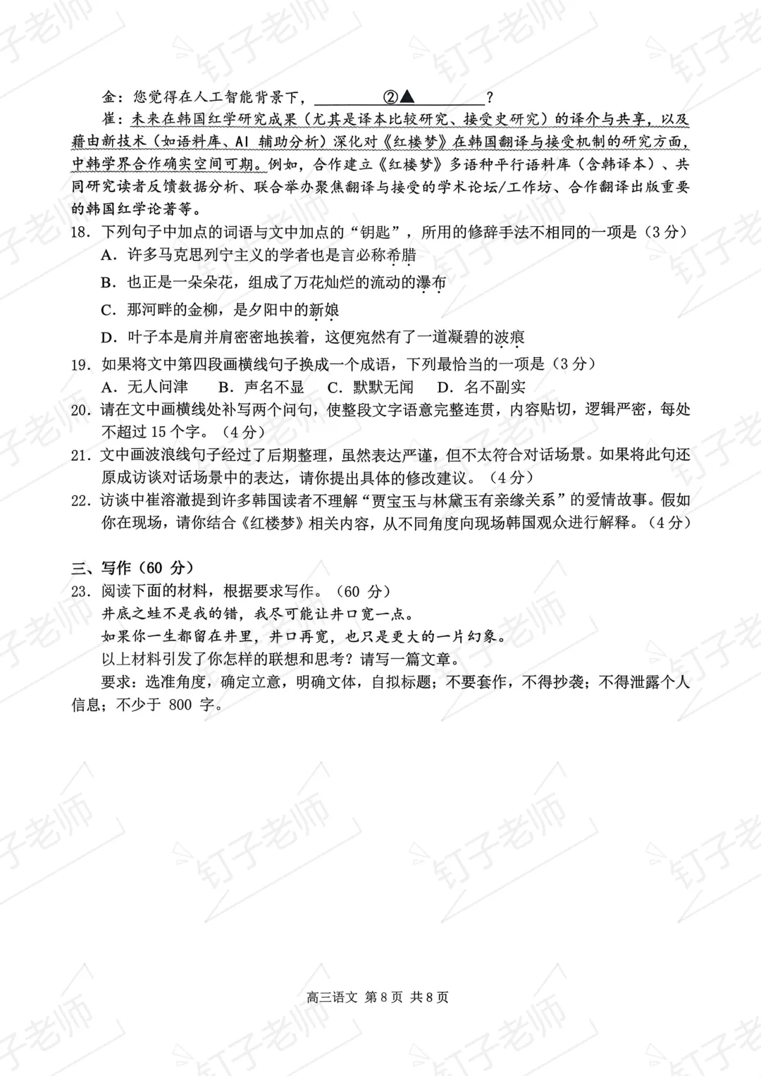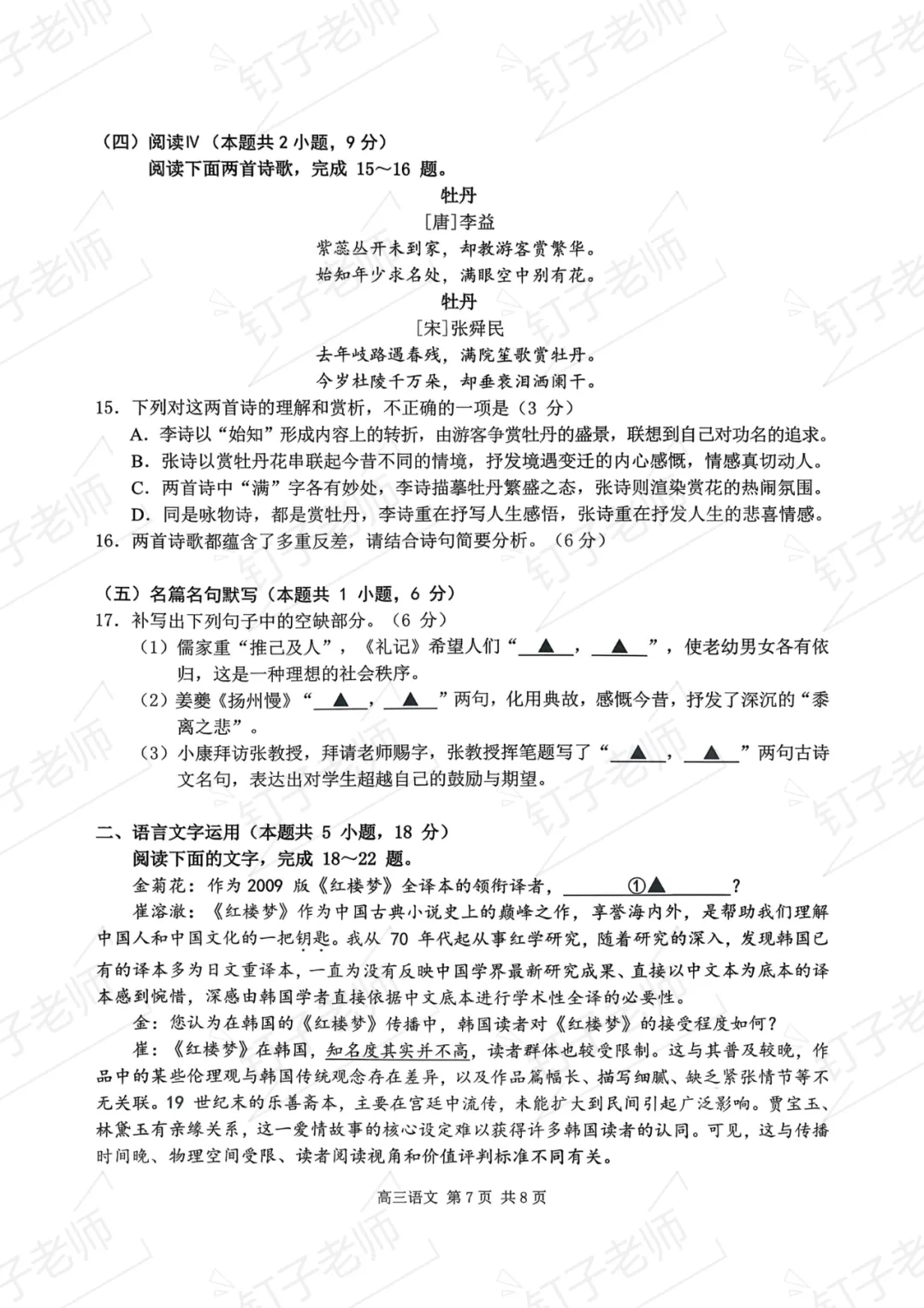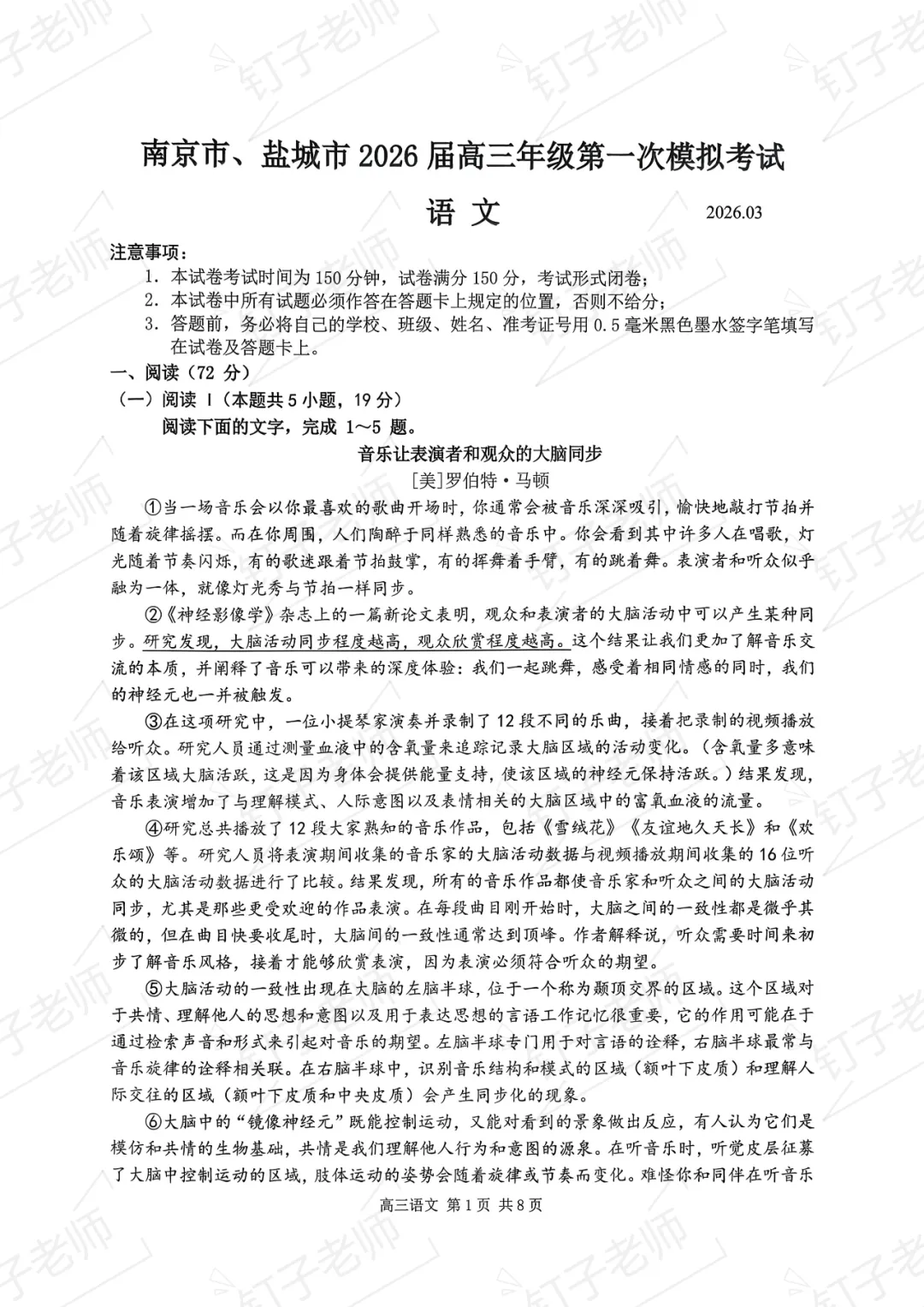 >试卷分享|2026年南京盐城一模语文试卷(原卷)