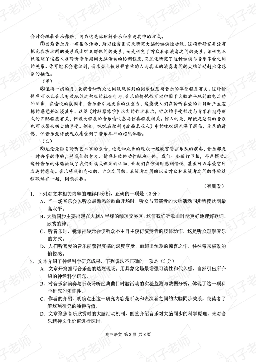 对答案 | 2026届成都二诊9科试卷及参考答案(含英语听力)