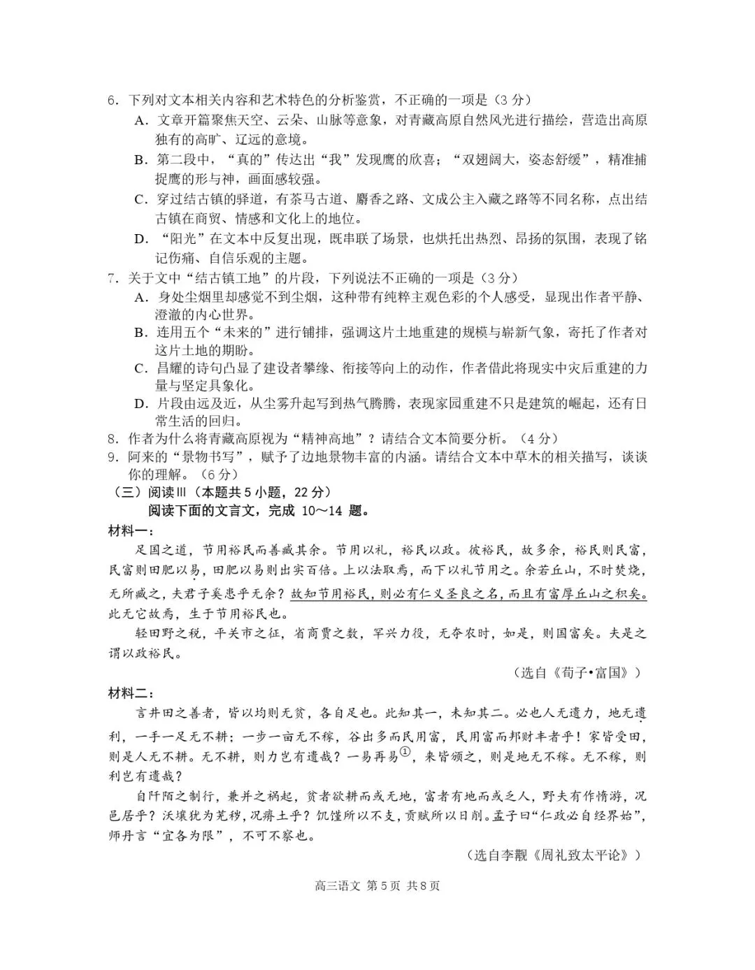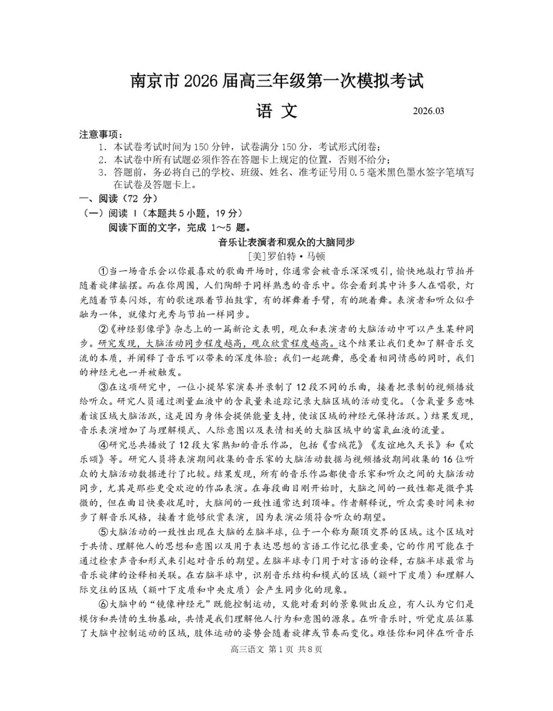 试卷分享|2026年南京盐城一模语文试卷(原卷)