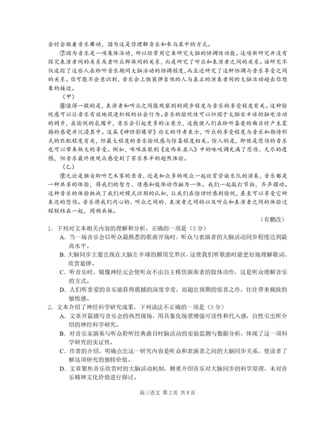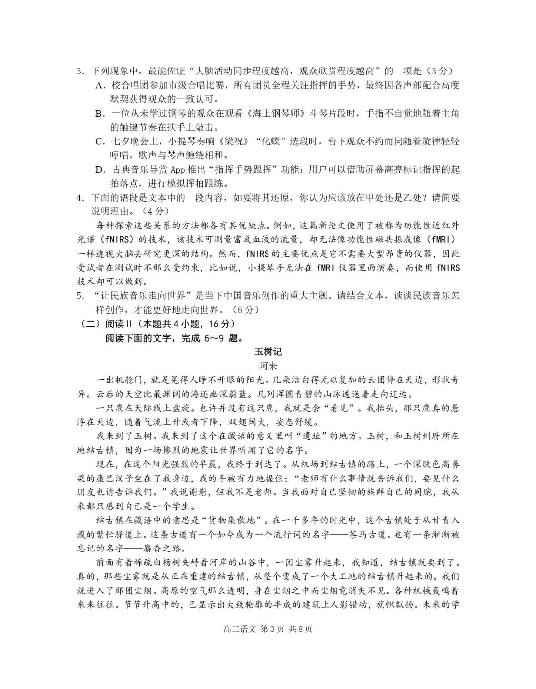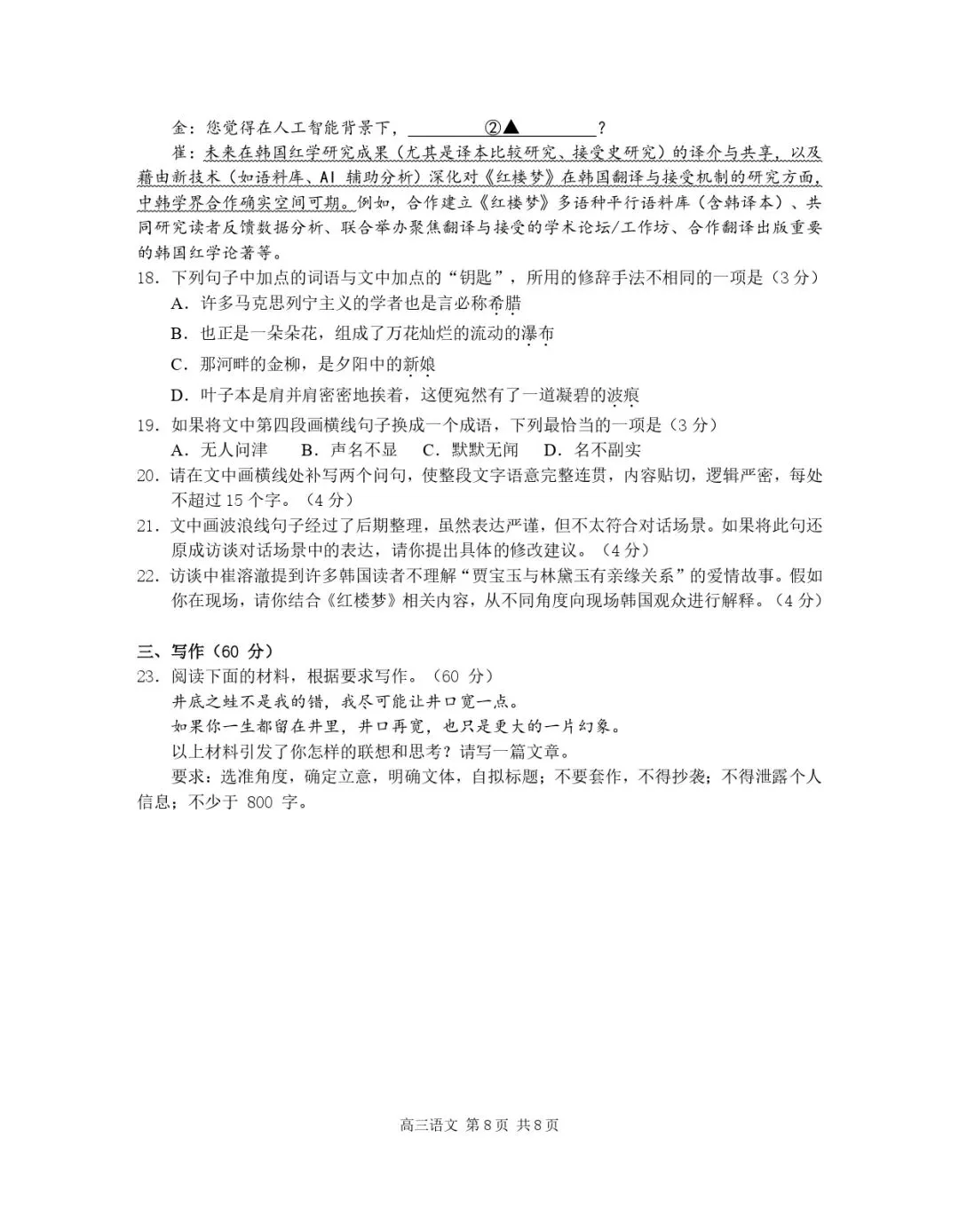 成都二诊英语试卷:终于看到一份不装的好卷子