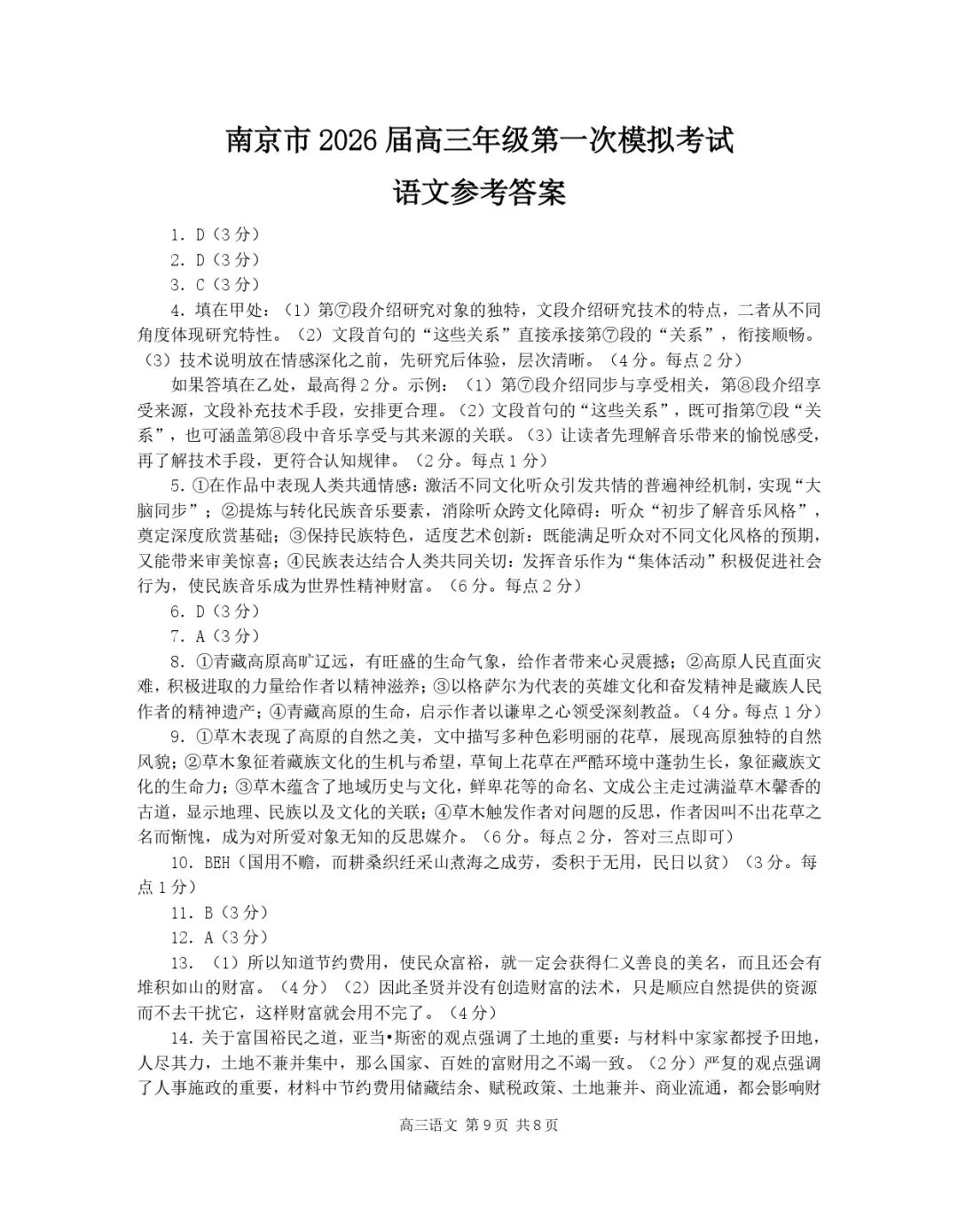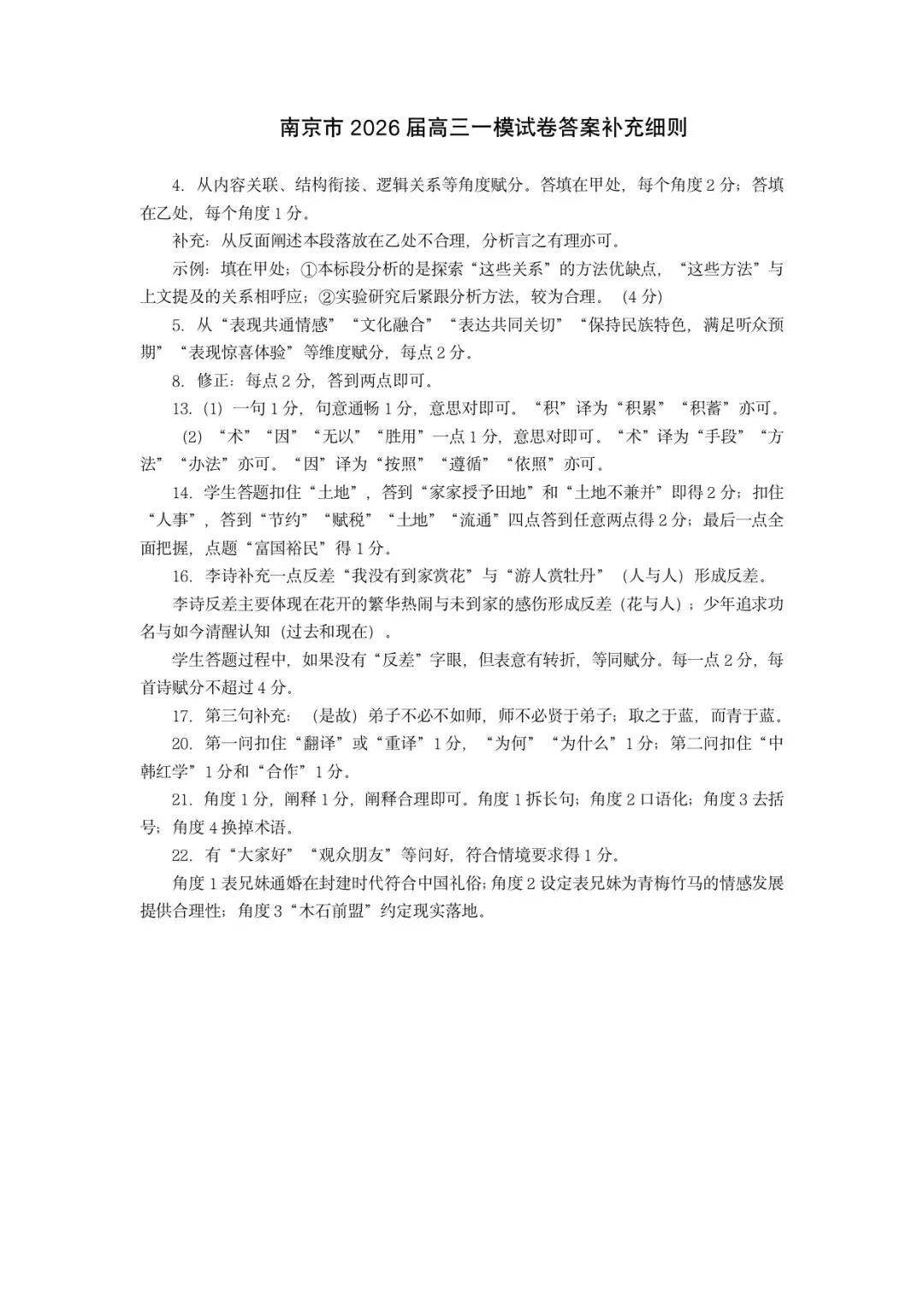>2026届南京盐城高三一模语文试卷及答案(含细则)