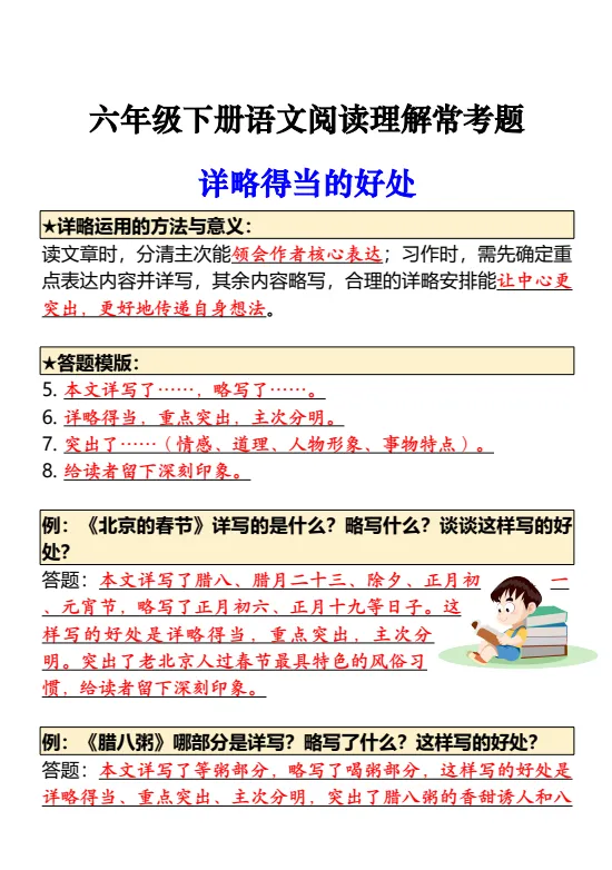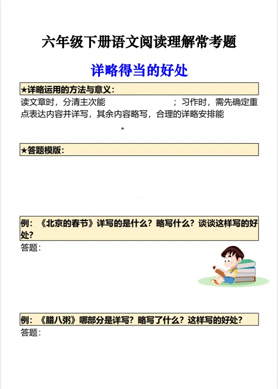今天给大家准备好了!~六年级下册语文阅读理解常考题丨可下载打印