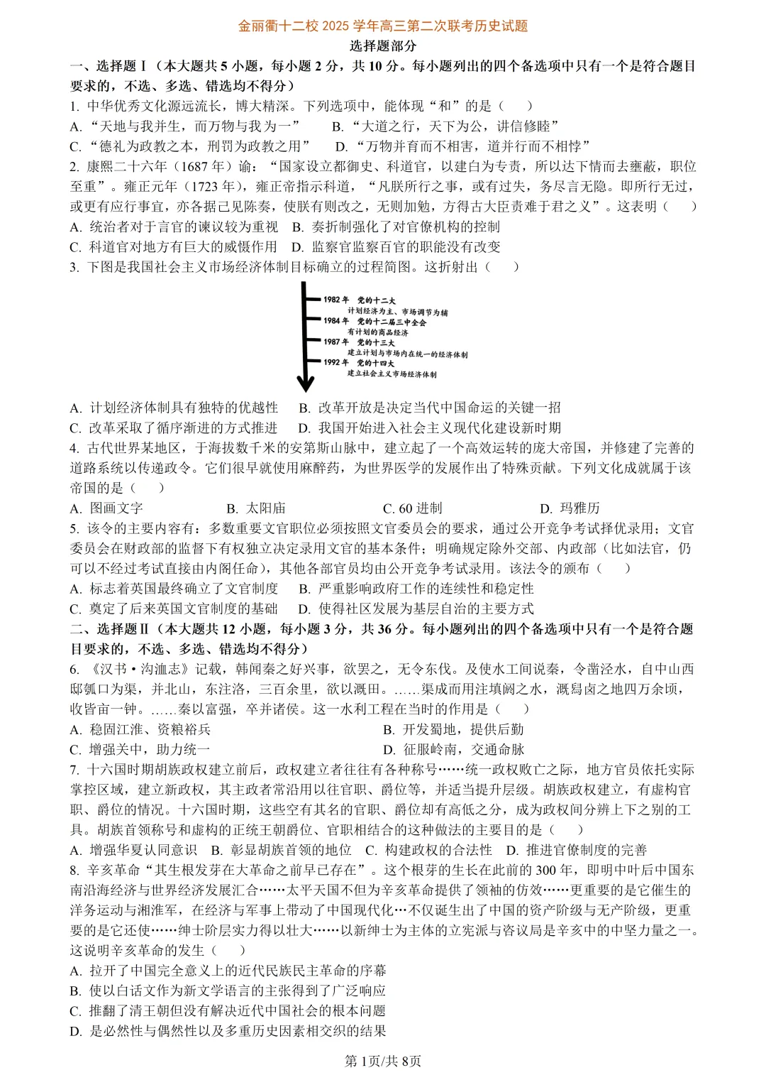 2026届·浙江省8-11月·各地高三联考模考到底考了啥【历史篇】