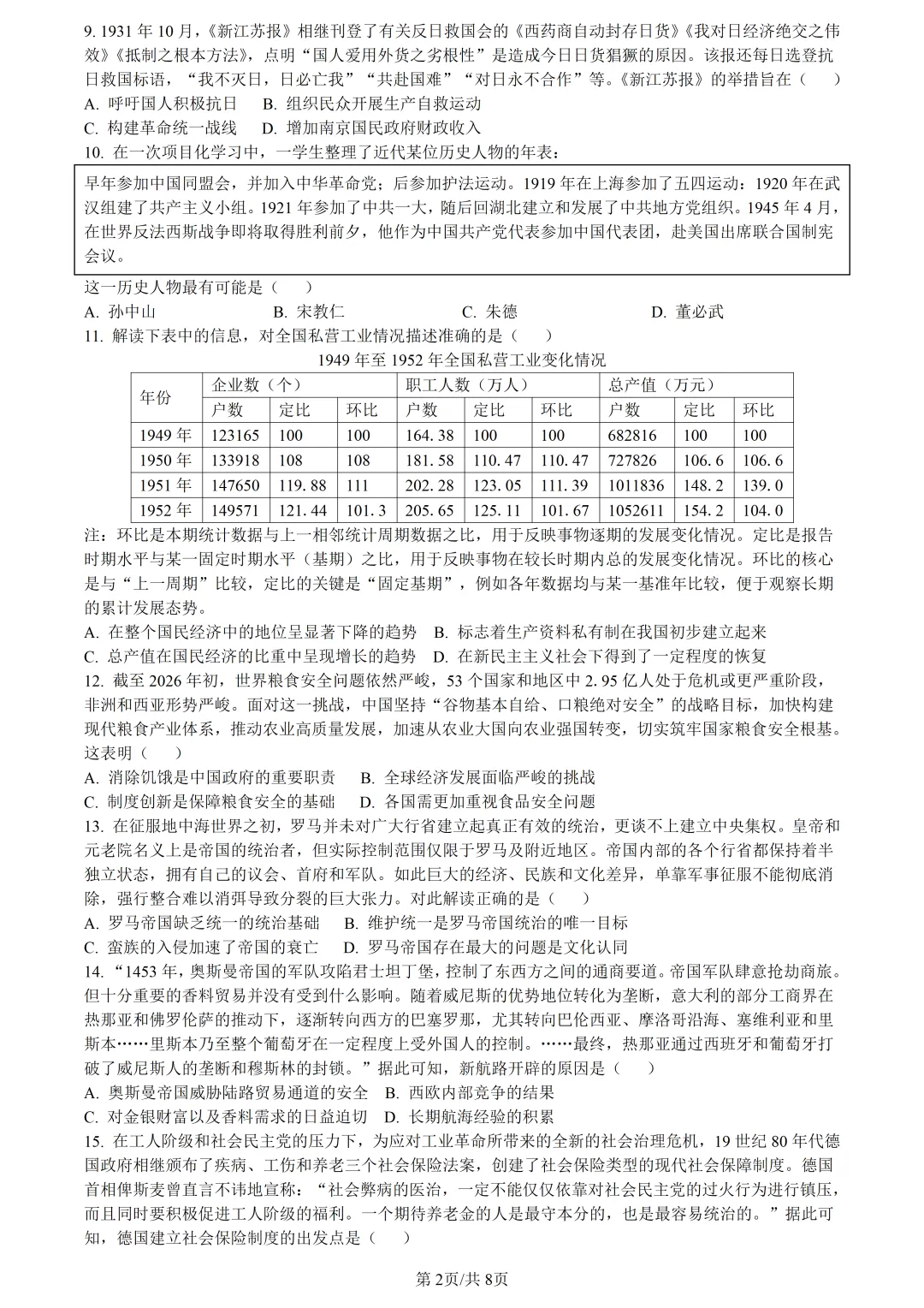 【试卷分享】2026届Z20第一次联考(历史·含答案与解析)