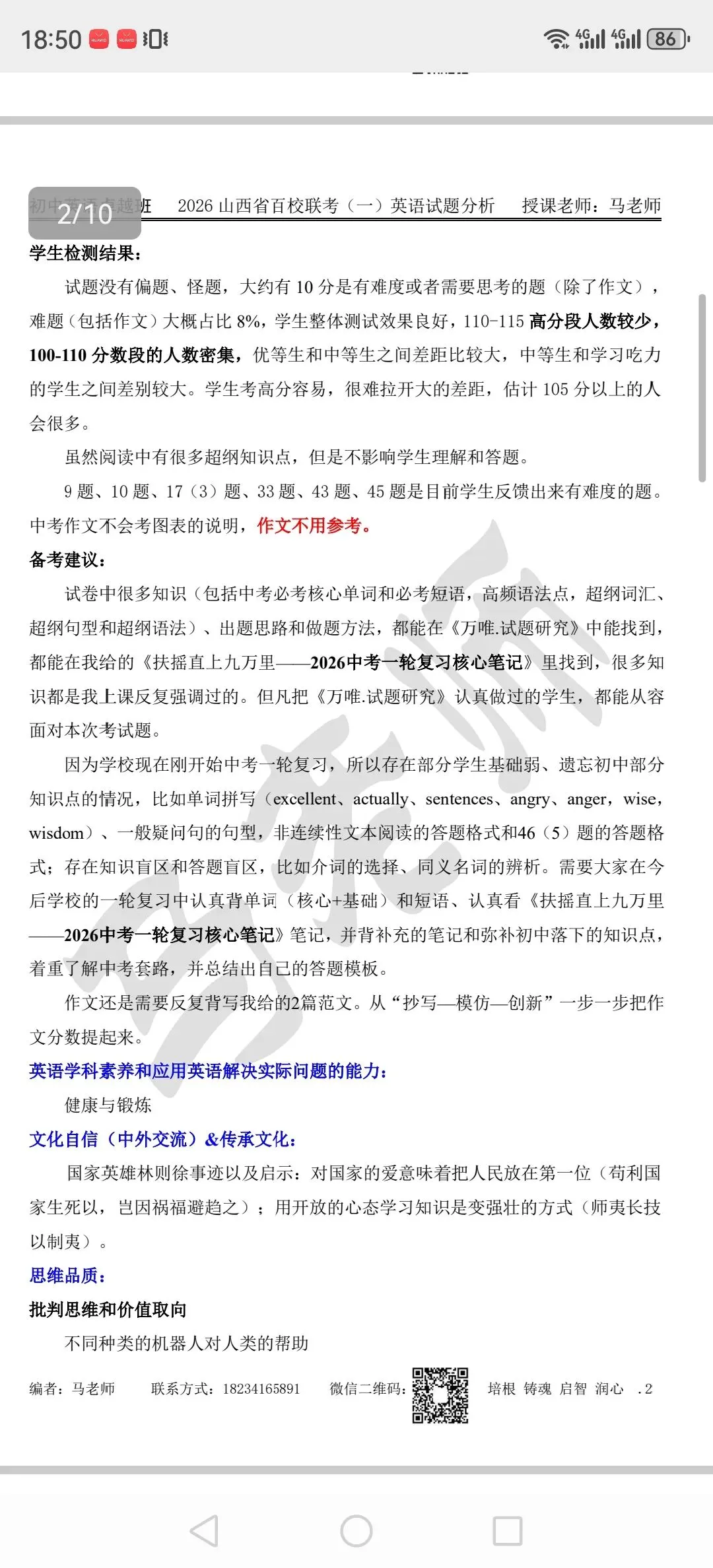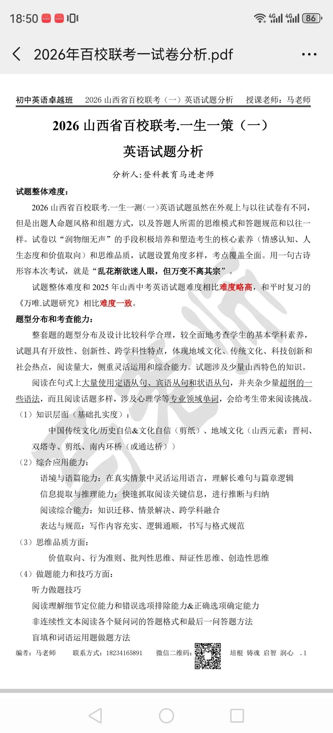 >2026山西百校联考一英语试卷分析