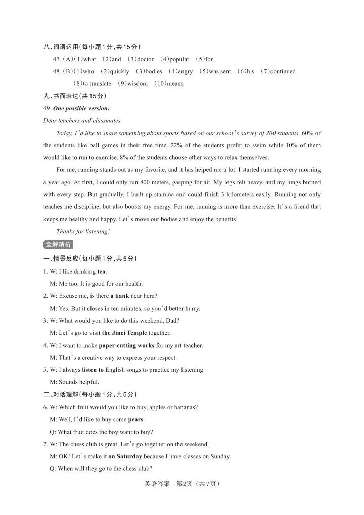2025年 江苏高考英语真题试卷及答案解析(PDF电子版免费分享)江苏高考真题及答案解析