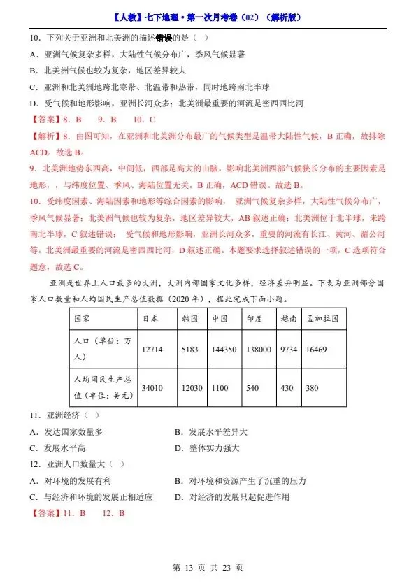 26春七年级下册人教地理第一次月考试卷2套(含答案)完整电子版可打印