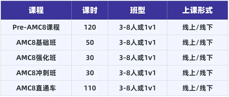 犀牛可选班级:AMC8预备班、基础班、强化班、冲刺班、全程班……