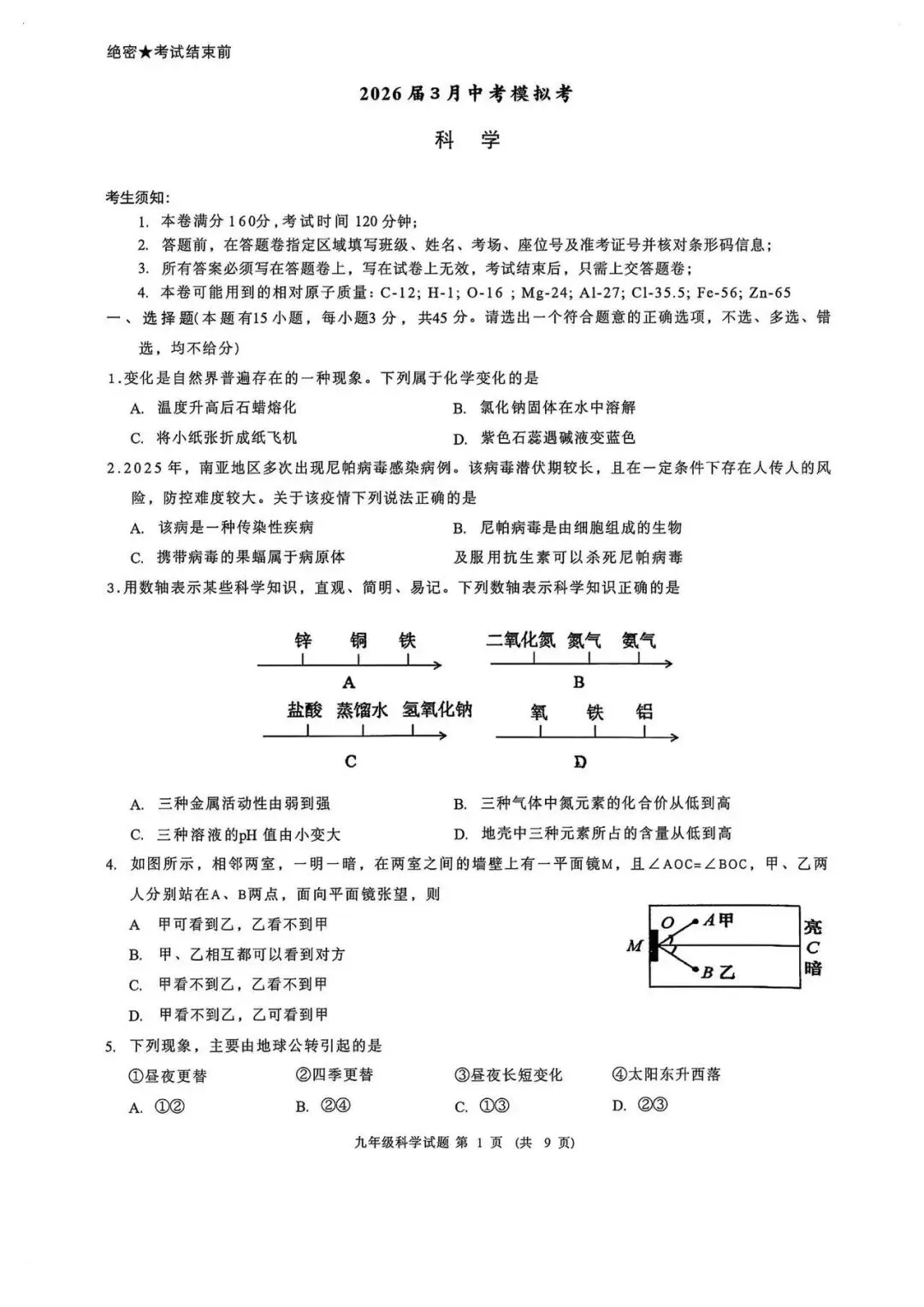 2603浙江名校共同体中考模拟科学试卷(1).pdf