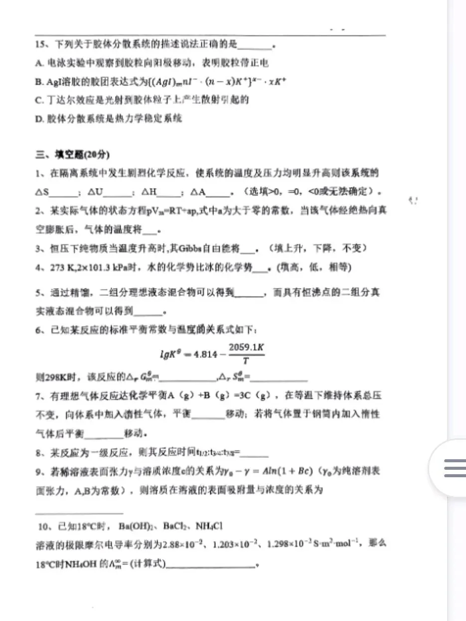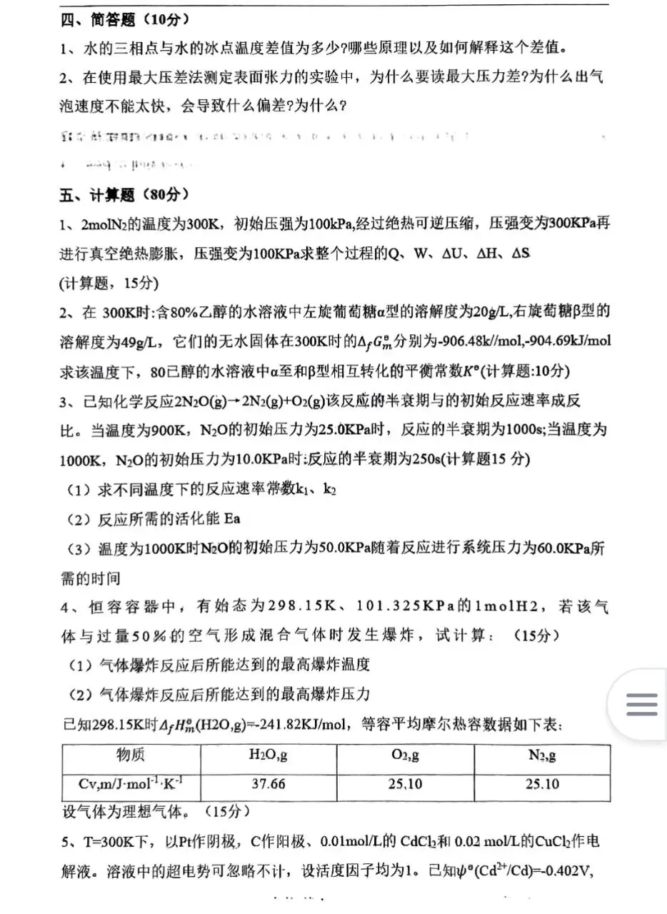 华中师范大学24物理化学考研真题