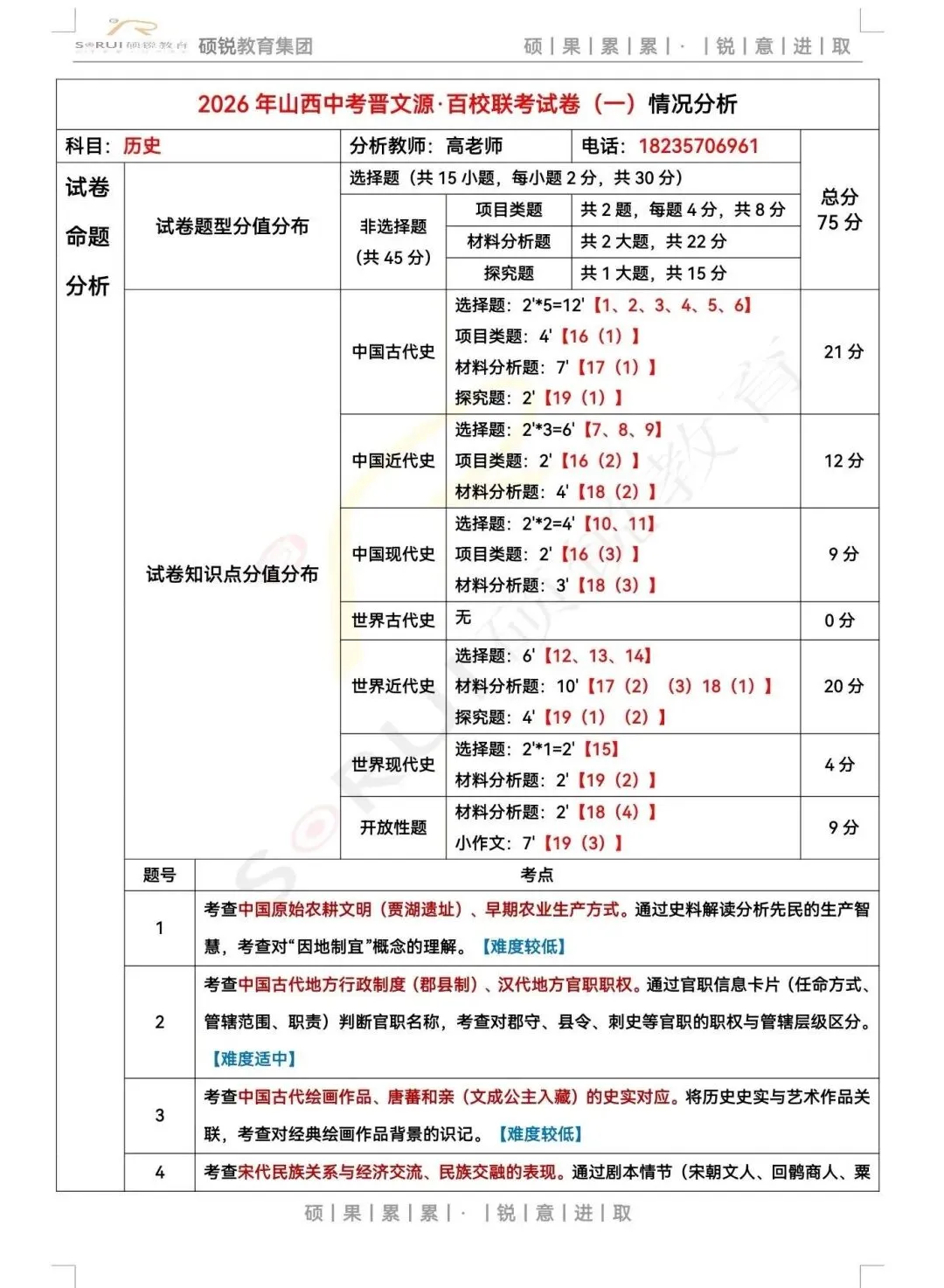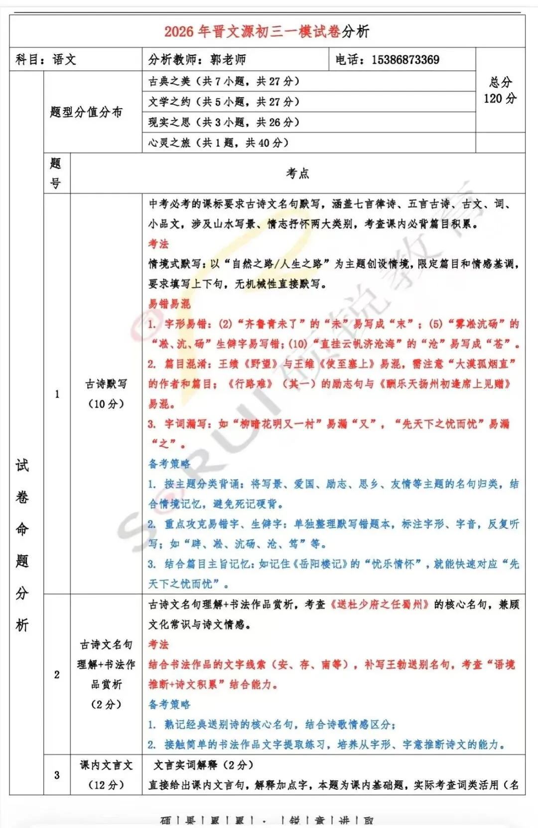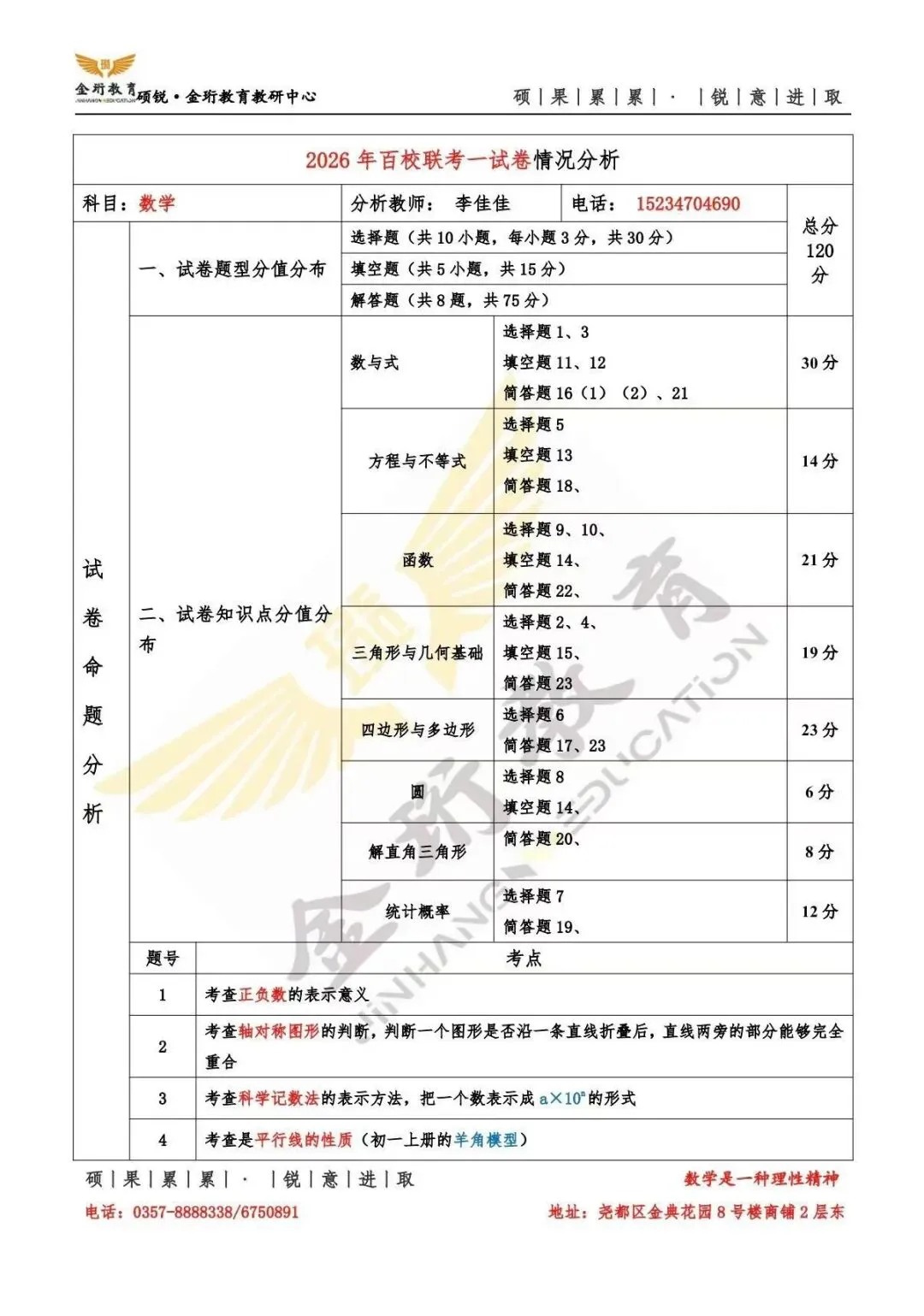 临汾硕锐/金珩教育初三百校联考的试卷分析已新鲜出炉!本次联考不仅是对初三学子现阶段学习成果的全面检验,更是中考备考路上的关键风向标,对后续复习规划有着至关重要的指导意义。结合试卷,我们清晰看到了学生在知识掌握、解题思路、应试技巧等方面暴露的问题。作为教育工作者,教书育人是我们的初心与责任。我们将针对联考暴露的问题,为学生制定精准的提升方案。各位家长、同学若有任何备考疑问,随时欢迎前来咨询!