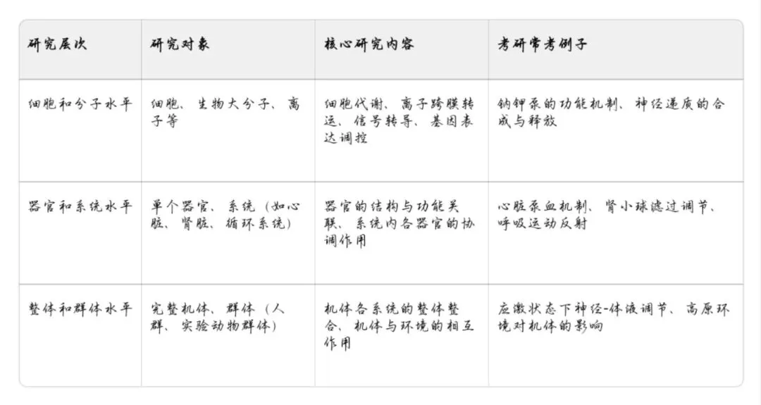 💡 考点金句:生理学研究的本质是“功能与机制”,而非单纯的形态结构。
