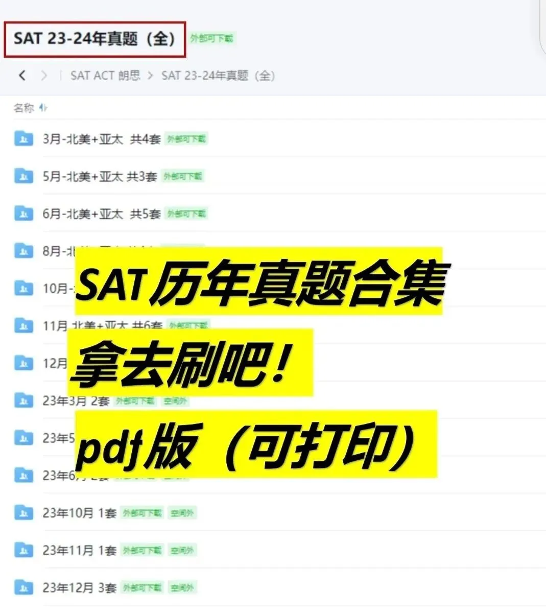 今天免费分享【SAT近三年真题合集】,高清PDF版本,可直接下载打印,无任何隐藏门槛,帮你高效备战SAT,精准冲刺目标分。