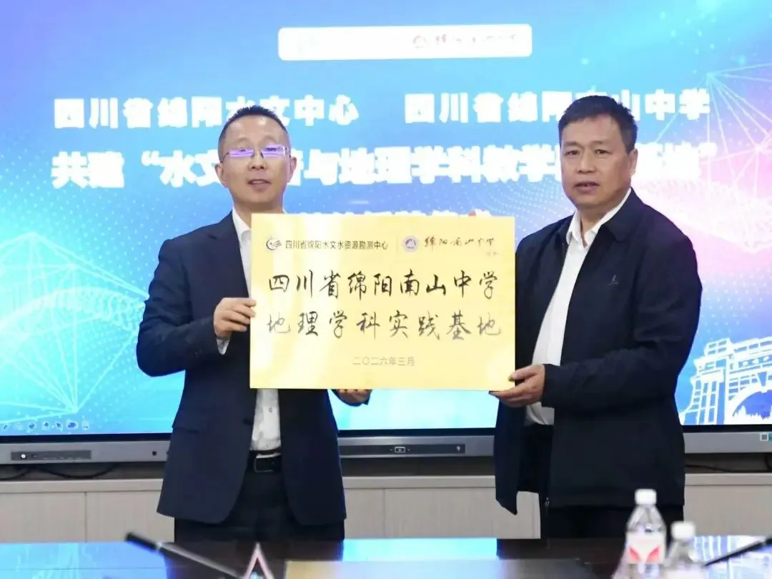3月24日上午,正值“中国水周”之际,绵阳水文中心与绵阳南山中学举行共建“水文科普与地理学科教学融合基地”的签约授牌仪式。这一合作,标志着行业资源与国民教育的一次深度握手,用“双向奔赴”的协同育人模式,将水文站变成“情境溯源”的实践课堂,把专业数据转化为“真情实景”的教学案例。未来,南山学子将有机会走进水文一线,亲眼见证水文数据从采集到应用的全过程,更真切地理解试卷上那一串数字的背后,是防汛抗旱的决策依据,是守护江河安澜的坚实数据支撑。