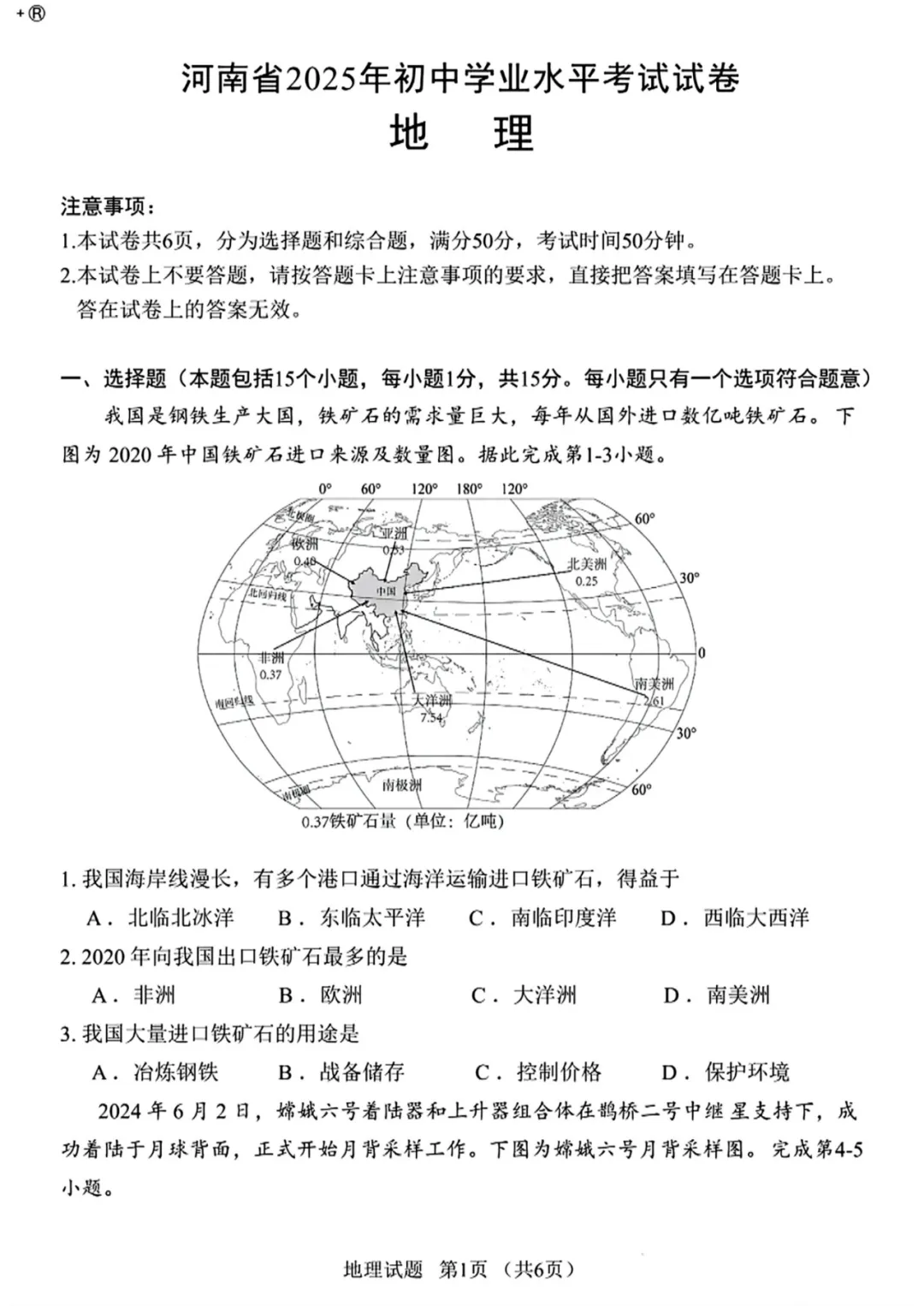河南省2024年中考地理试卷和答案.pdf