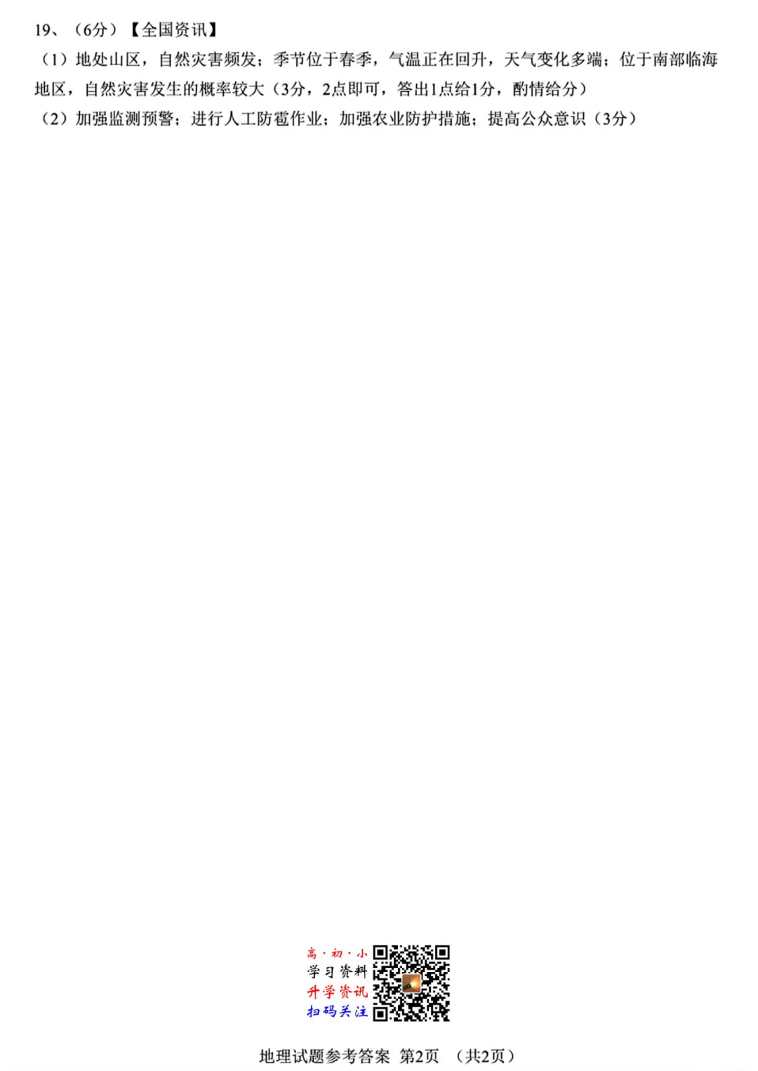 识别下方二维码,进入公众号,发送汉字【地理生物真题】
