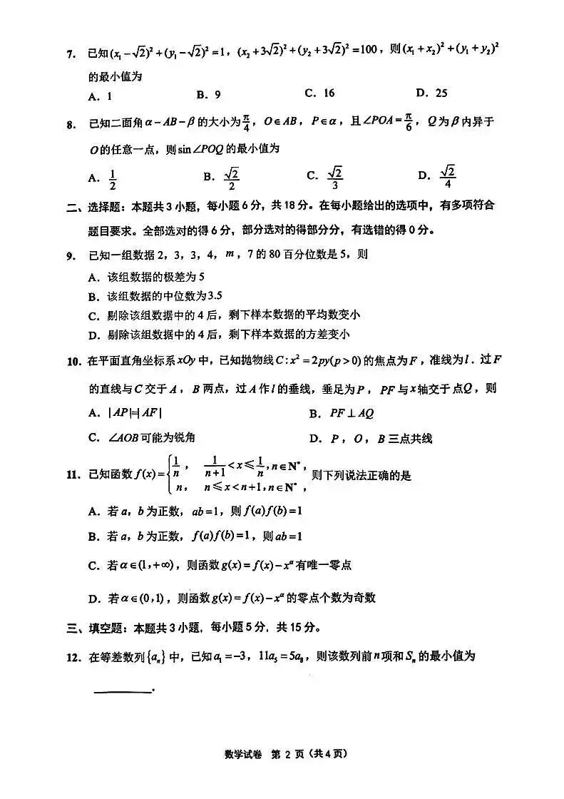 二、多选题(本题共3小题,每小题6分,共18分.在每小题给出的四个选项中,有多项是符合题目要求,全部选对的得6分,部分选对的得部分分,有选错的0分)
