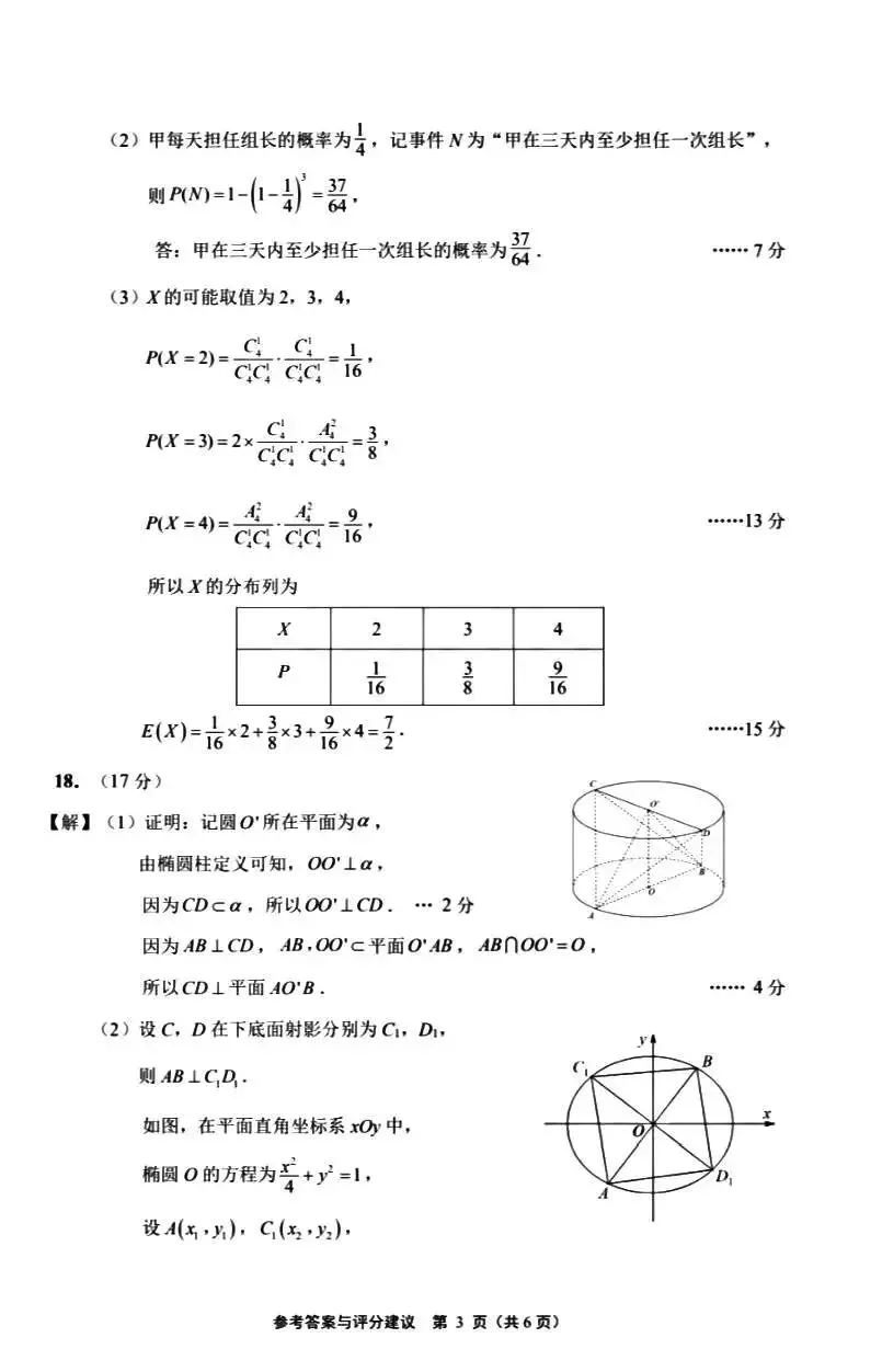 注意:解答题考查的为三角函数、立体几何、数列、概率统计(或线性回归分析)、圆锥曲线、函数与导数。