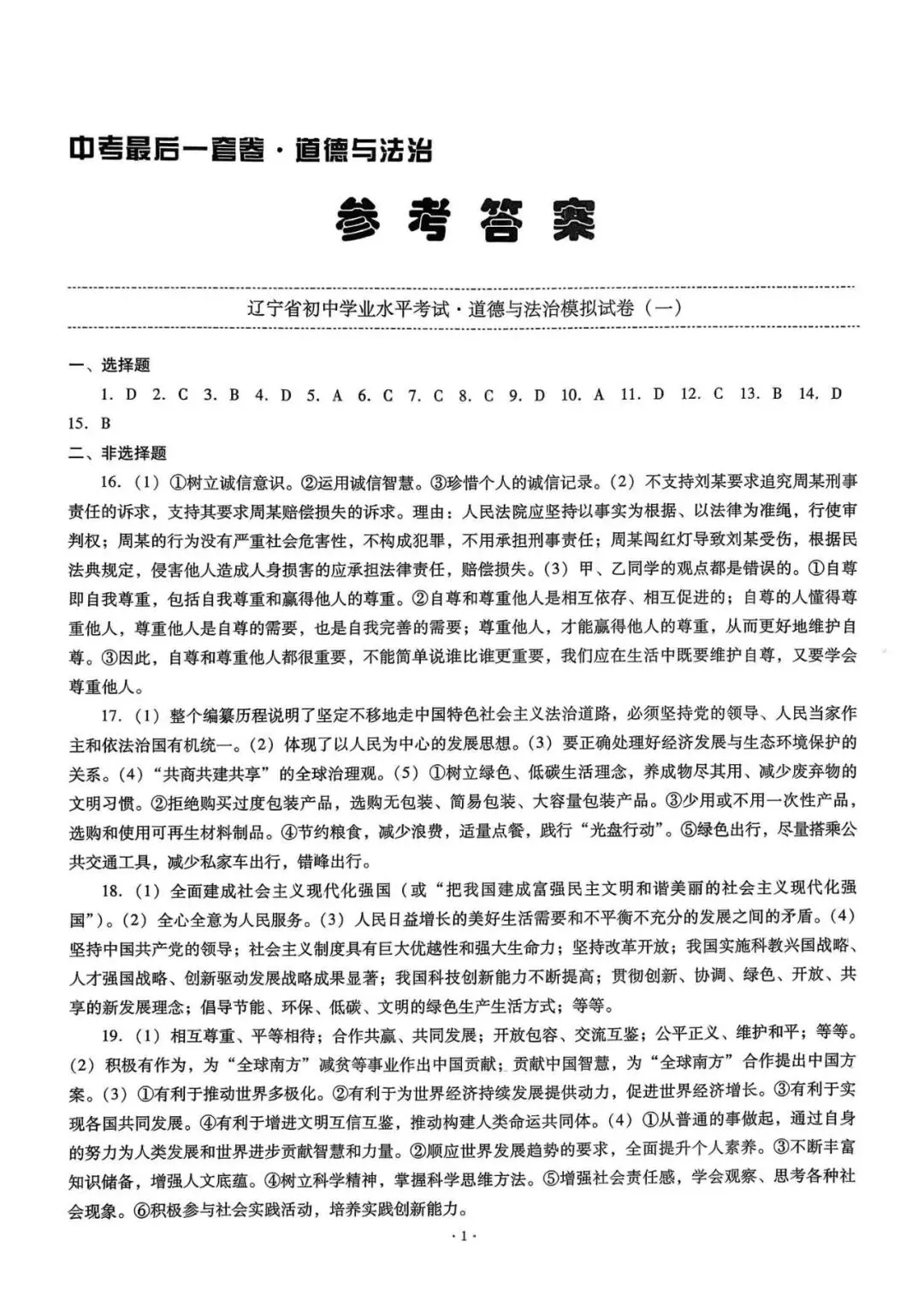 >辽宁省中考道法模拟试卷(一)——中考最后一套卷2026年(辽宁专版)