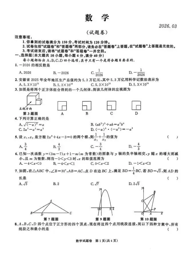 2026年乌鲁木齐市 二模 试卷 2026يىللىق ئۈرۈمچىنىڭ 2قىتىملىق مانىۋىر سۇئالى