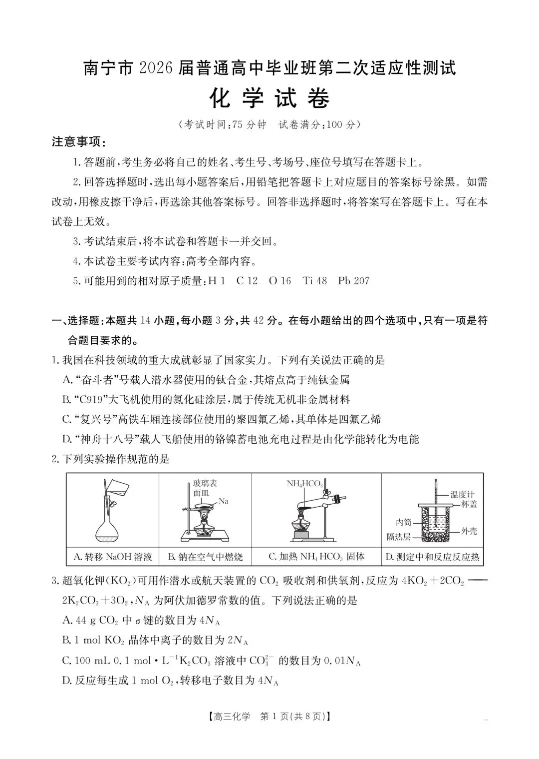 【全科试卷】2026届广州市普通高中毕业班综合测试(一)| 广州一模