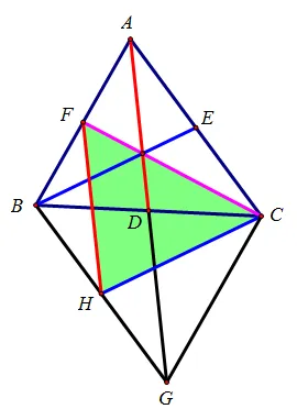 设△ABC面积为S,倍长AD得平行四边形ABGC,其面积为2S
