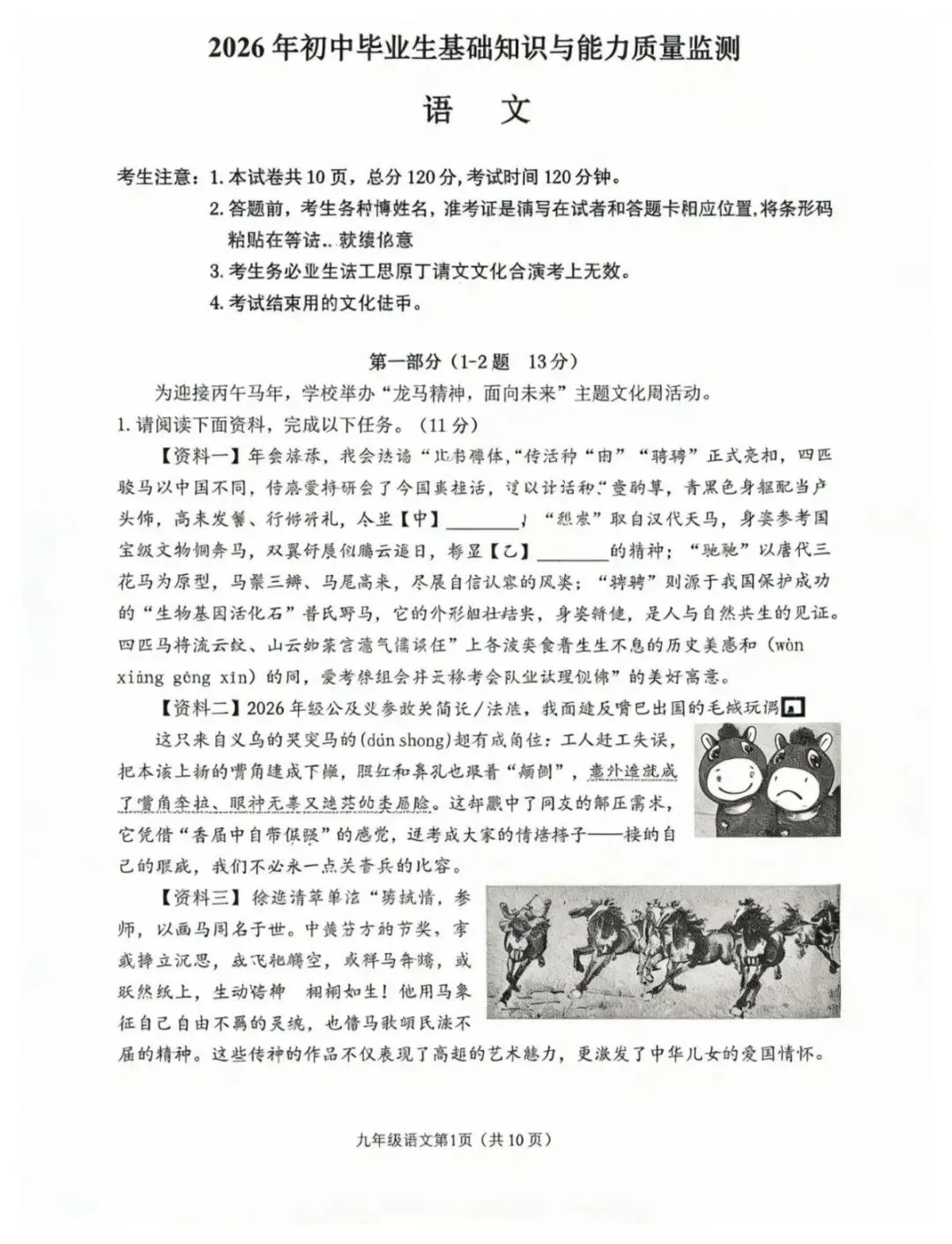 2026年石家庄市桥西区中考一模语文试卷