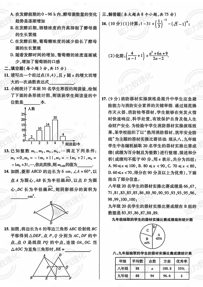 2026年商丘市梁园区第十六中学中考一模试卷及答案(语数英物化)