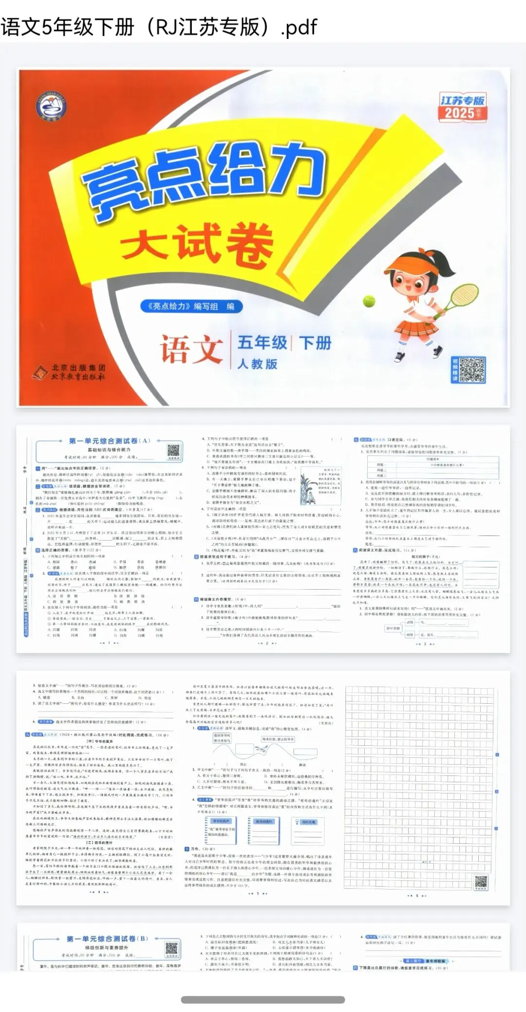 《亮点给力大试卷》江苏专版语文1-6年级下册,链接:https://pan.quark.cn/s/f874107c7d35