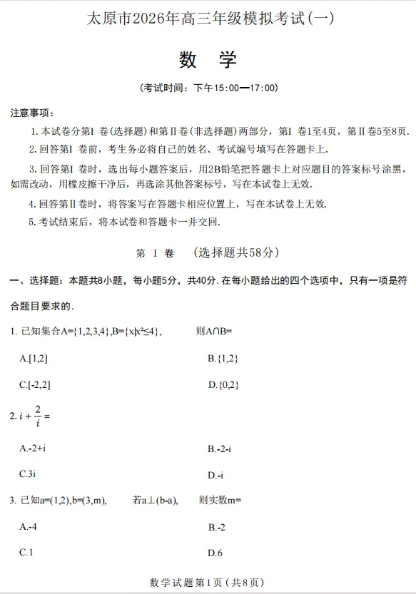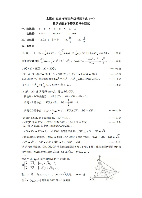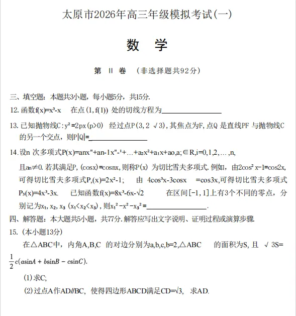 2026湖北十一校联考高考数学试卷+答案解析(可打印)