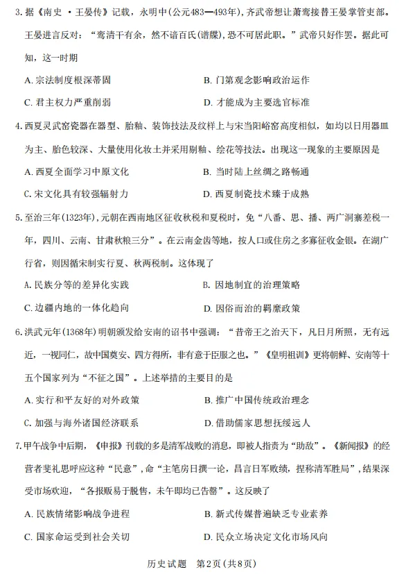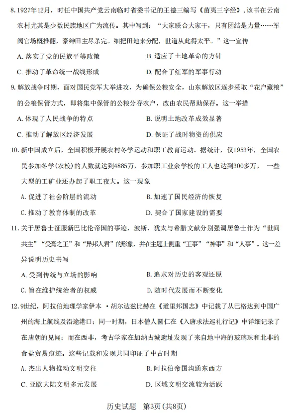 百师联盟高三二轮复习3月联考试卷答案汇总